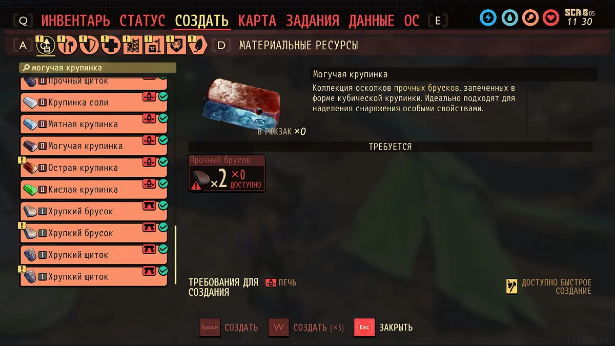 - 6 уровень: 5 крупинок (мятных/кислых/острых/соли). Эффект: урон +30%, прочность +30%.