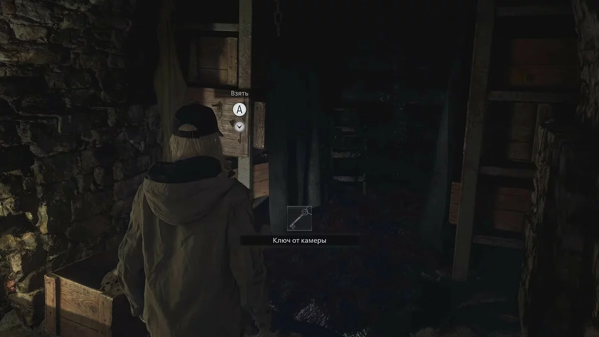 Проходим в следующее помещение и находим ключ от камеры на крючке.