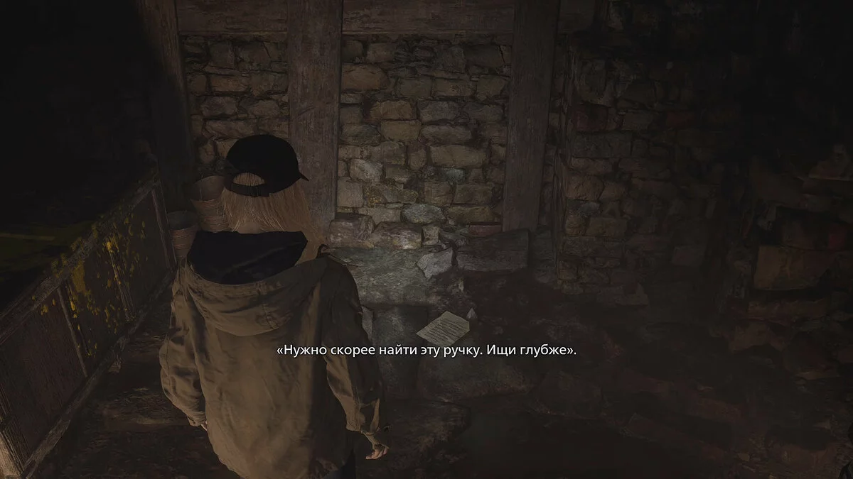Пролезаем через проём в стене и изучаем заметку на полу.