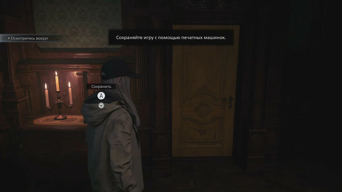 После видеоролика сохраняемся при помощи печатной машинки. Проходим через жёлтую дверь.