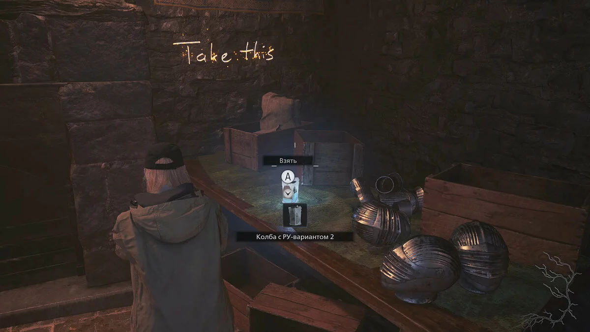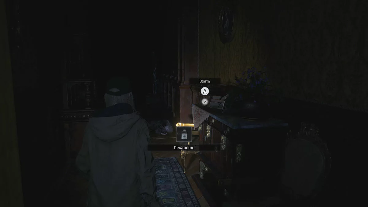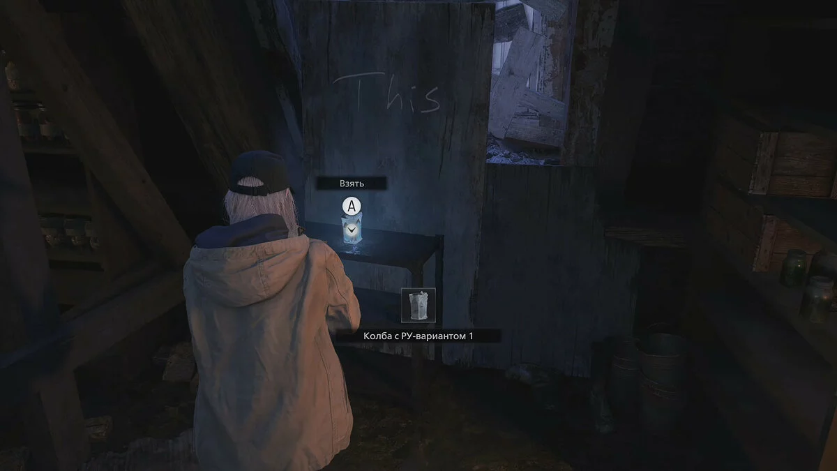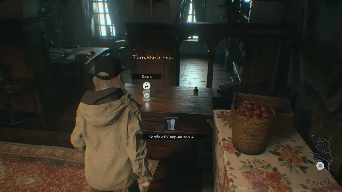 Идём по коридору и в большой комнате забираем лекарство и колбу с РУ-вариантом 4.