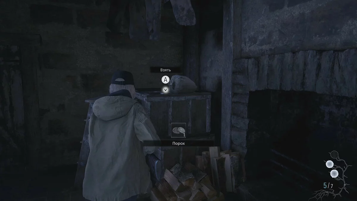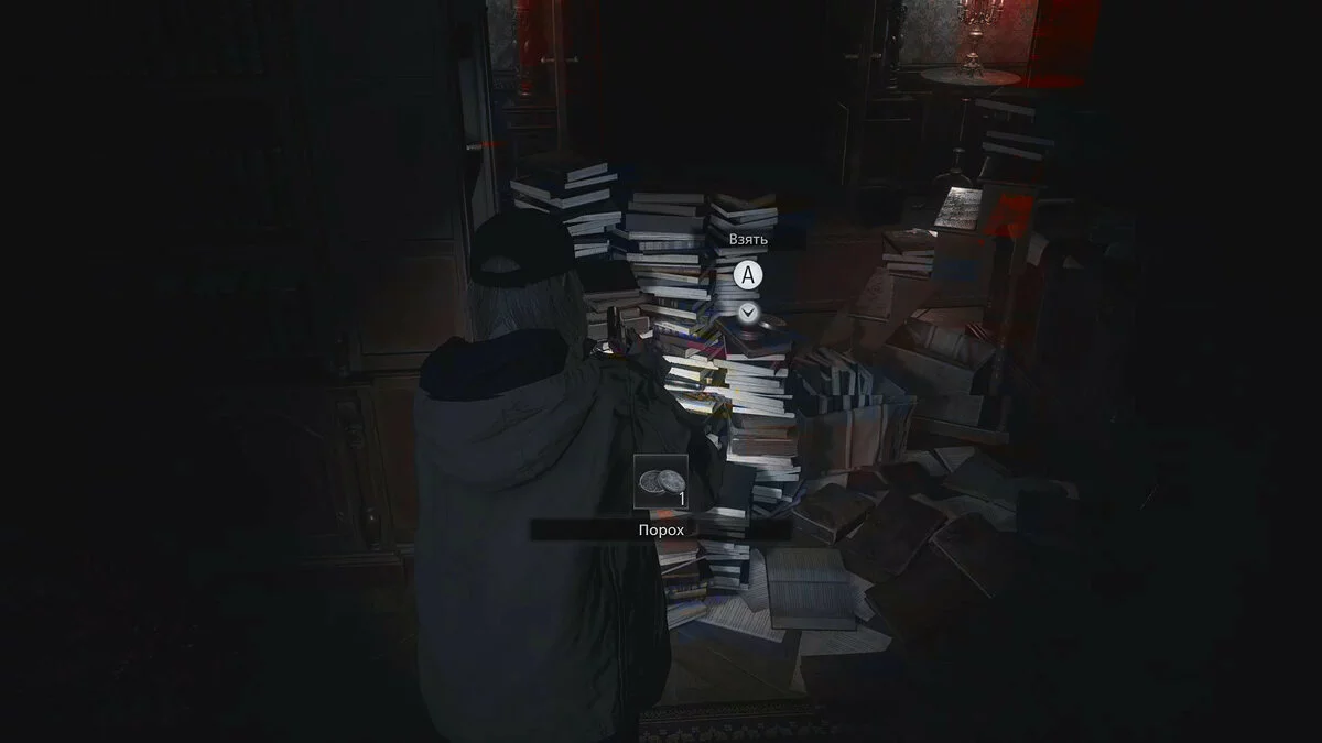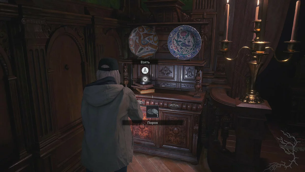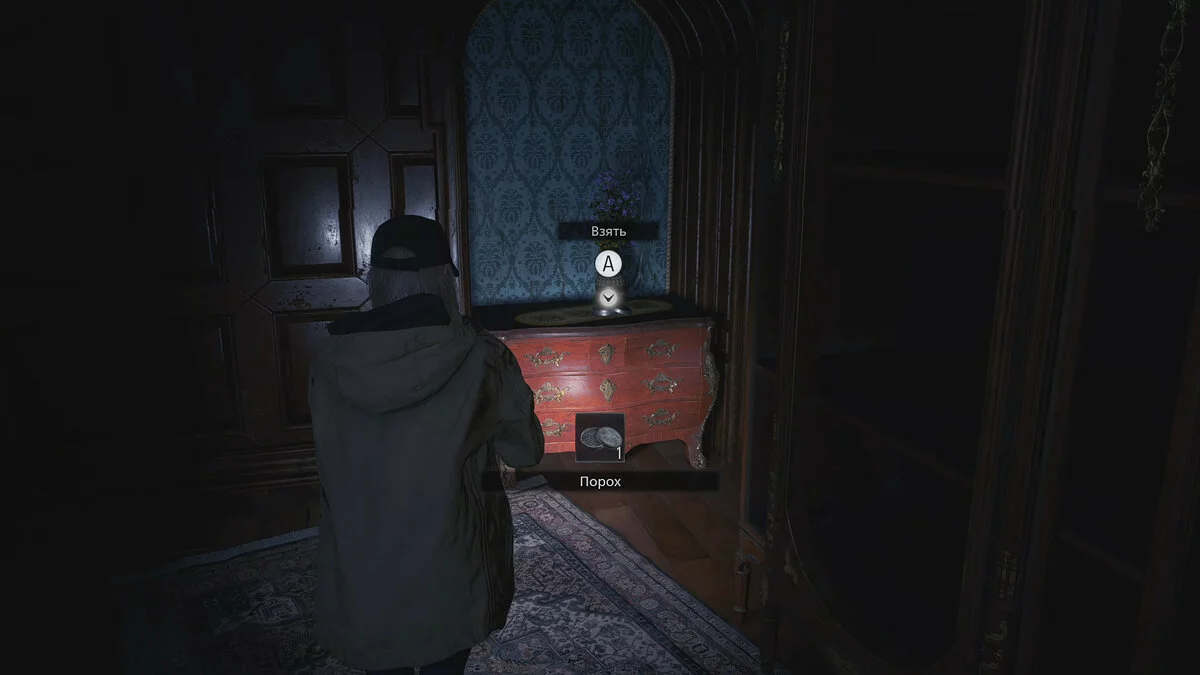 На комоде спереди забираем порох и поднимаемся на второй этаж.