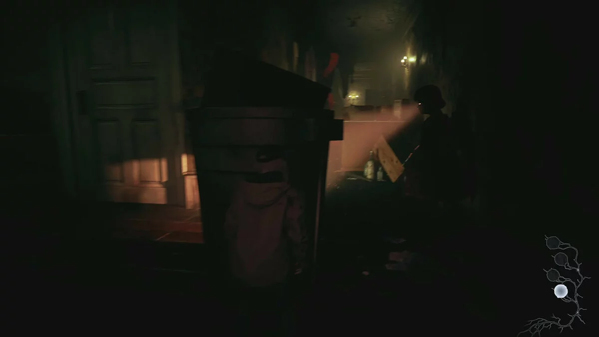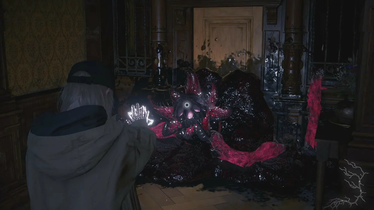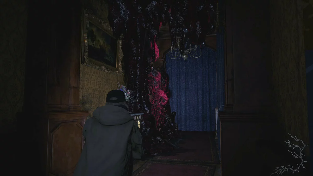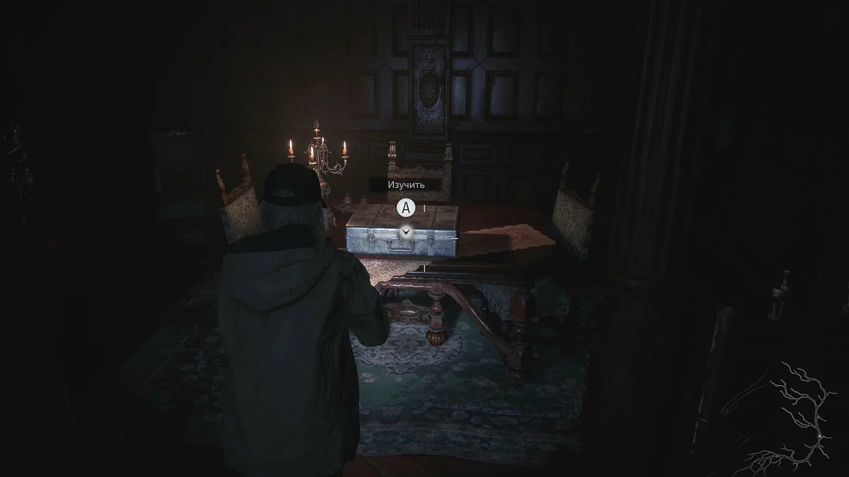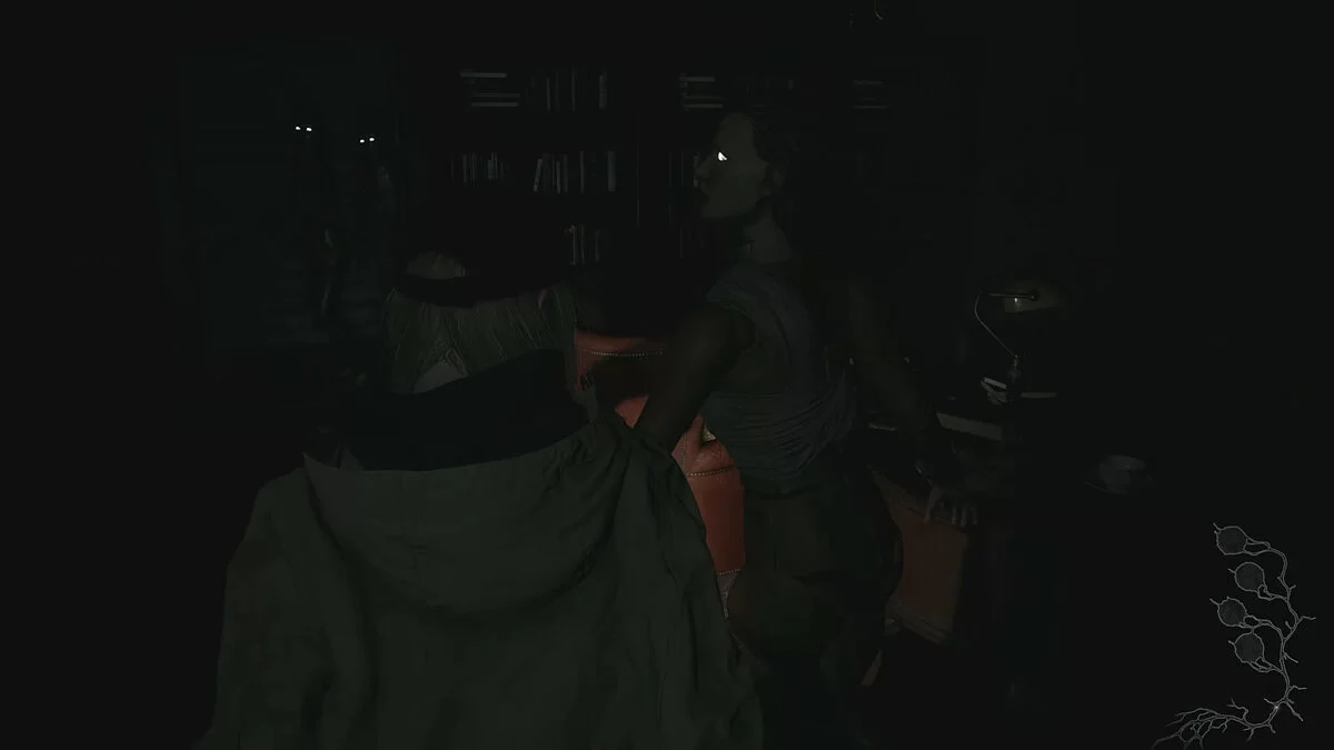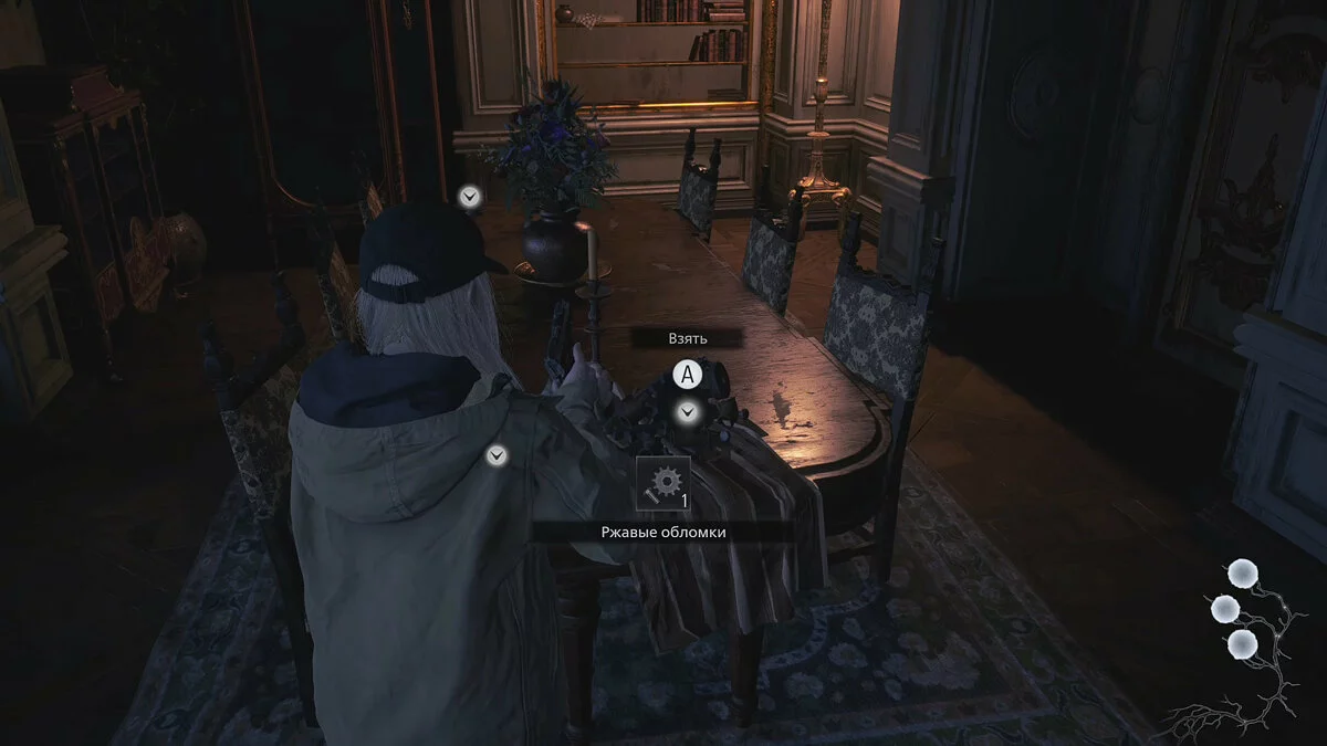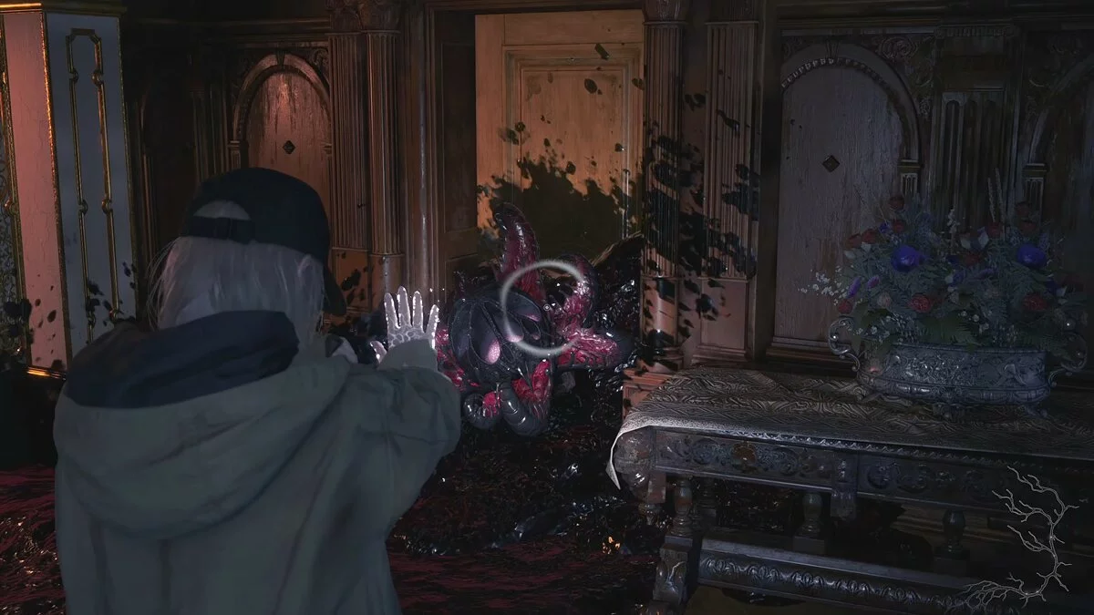Как только куклы отвернутся, добегаем до безопасной зоны и разрушаем цветок. Обходим стол и уничтожаем ещё один сгусток. В следующей комнате прячемся под столом от манекена.