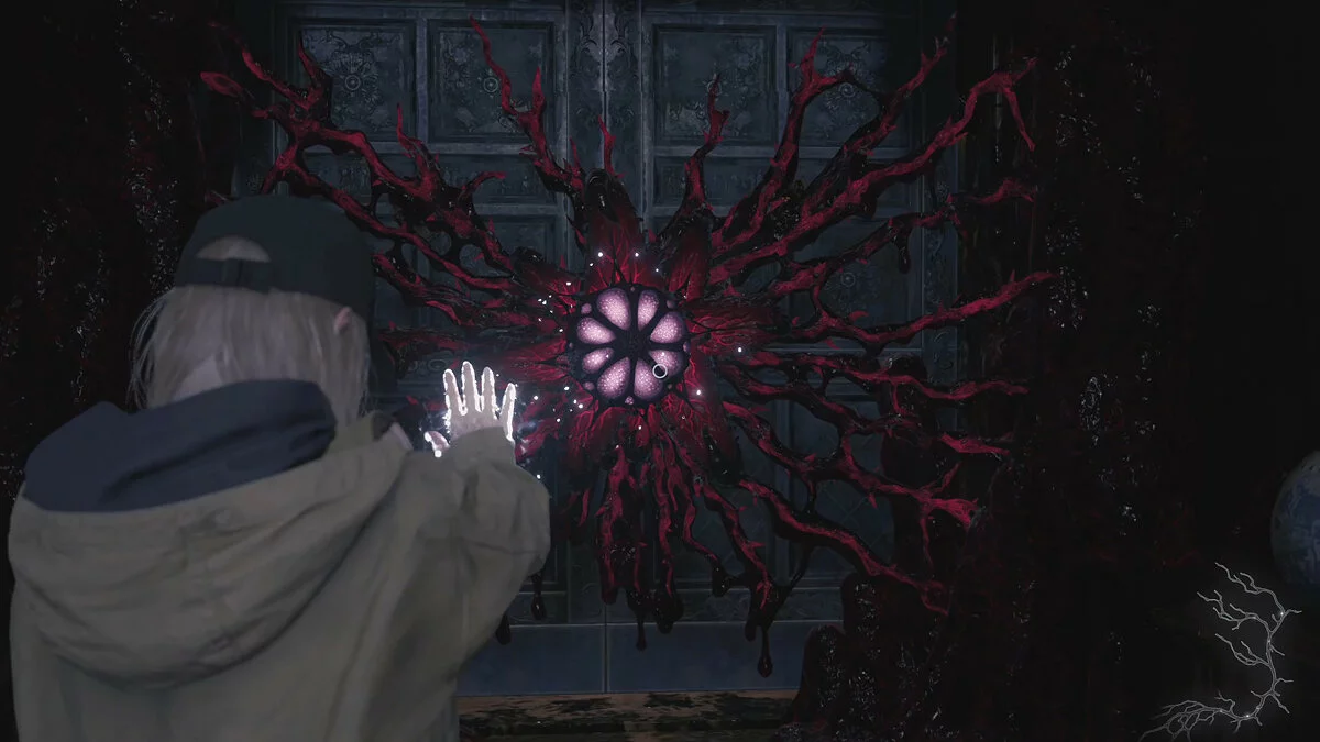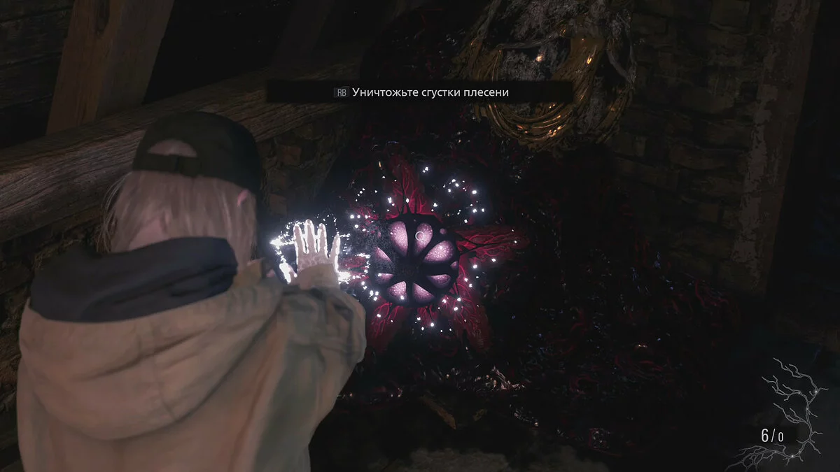 В главном зале применяем силу на двух сгустках плесени — на двери и лестнице.