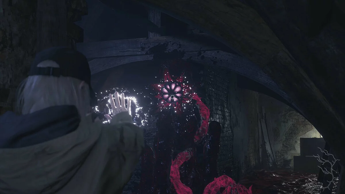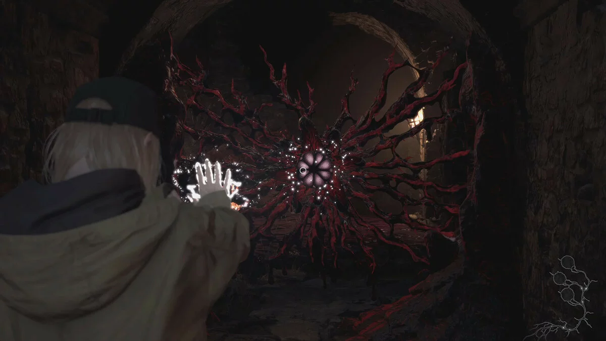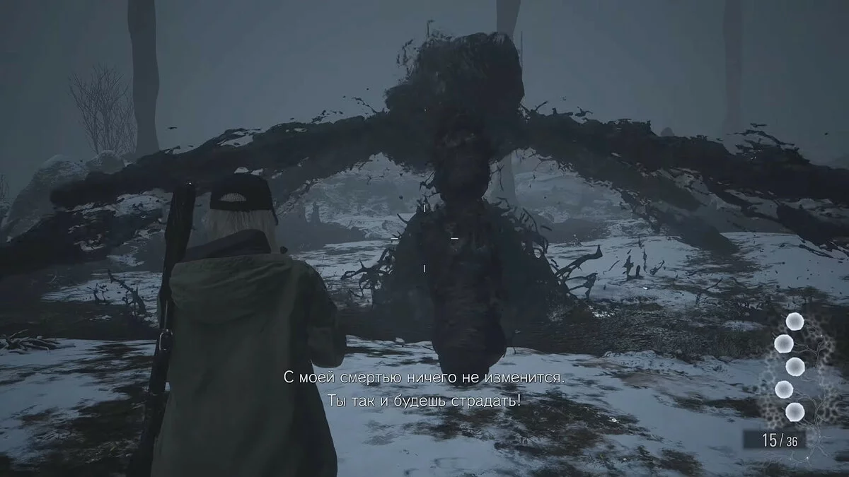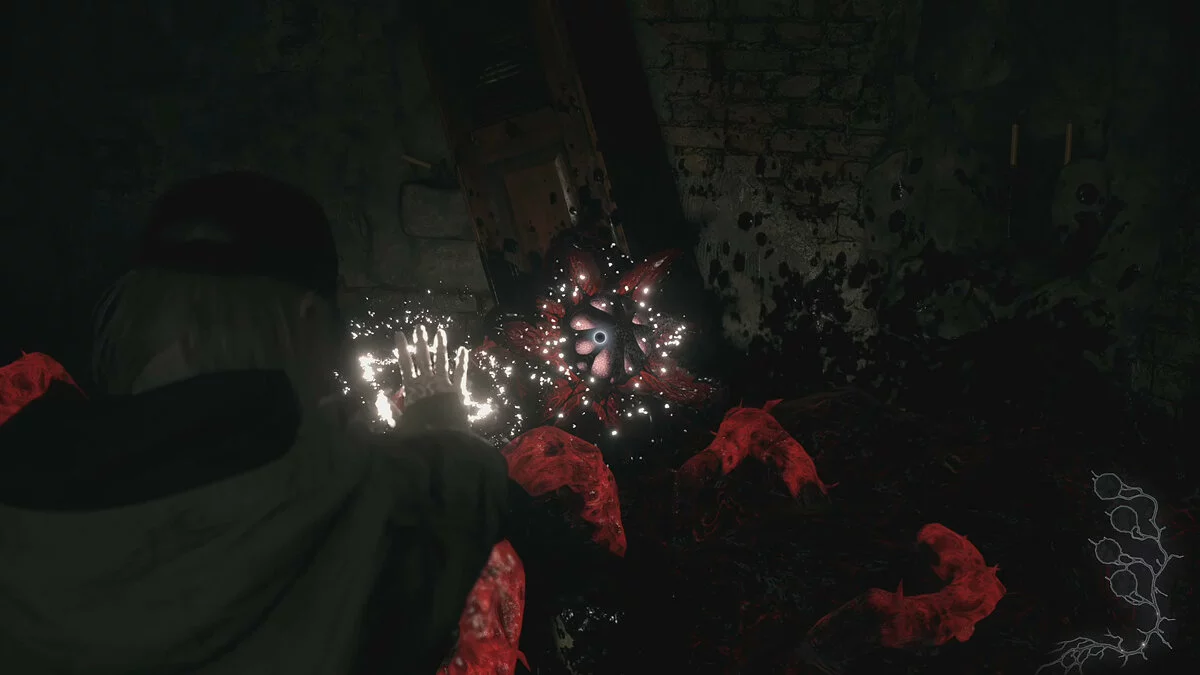 Используем сверхспособности героини, чтобы замедлить противника, а после стреляем в открытую зону у него на груди. Не позволяем врагу подойти ближе, а в отверстиях в стене поднимаем патроны пистолета и дробовика. Через некоторое время босс упадёт, а решётки откроются. Придётся уничтожить простых монстров.