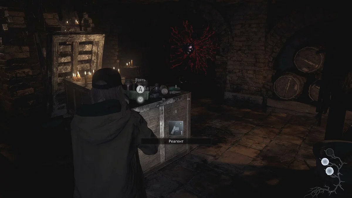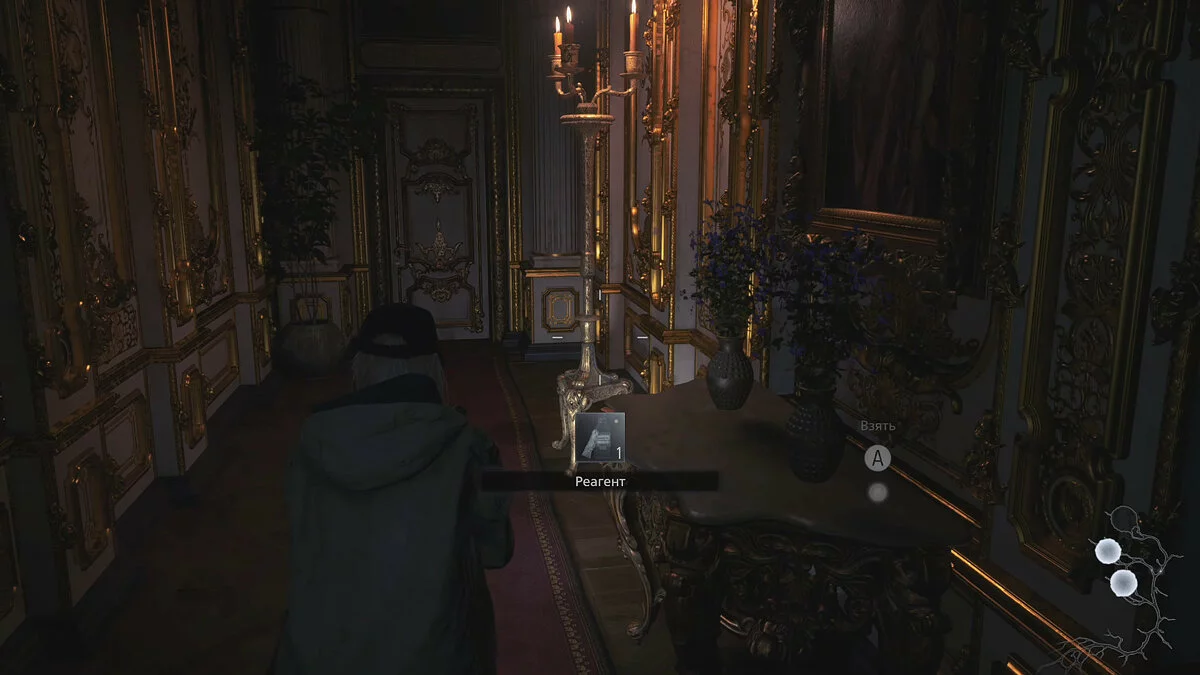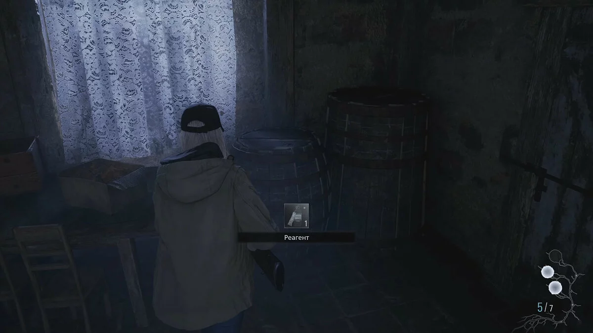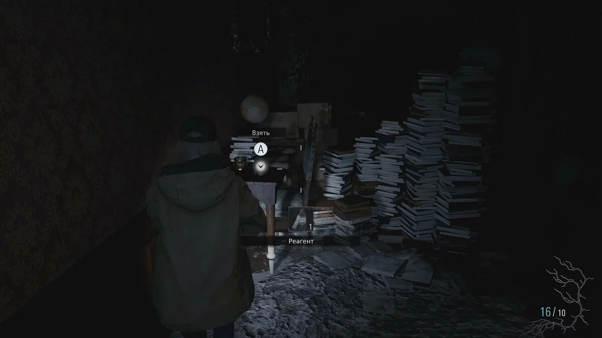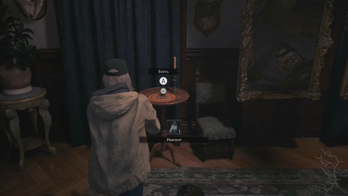В следующей комнате применяем силу на сгустке плесени в углу комнаты и забираем реагент с тумбочки.