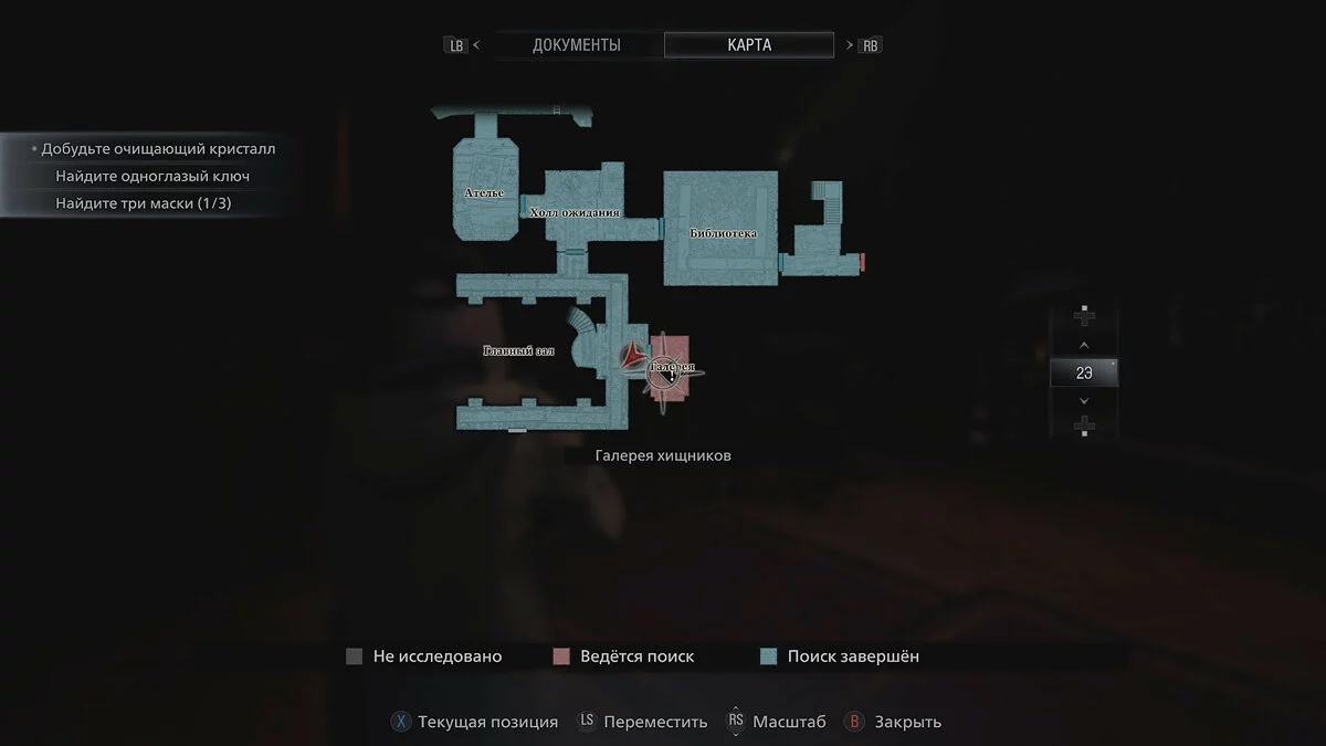 - Чаще смотрите на карту. Все комнаты, в которых игрок сможет найти полезные предметы или что-то сделать, отмечены красным цветом. Синий цвет подскажет о сборе всех полезных артефактов. Это касается только припасов и сокровищ, документы не учитываются.