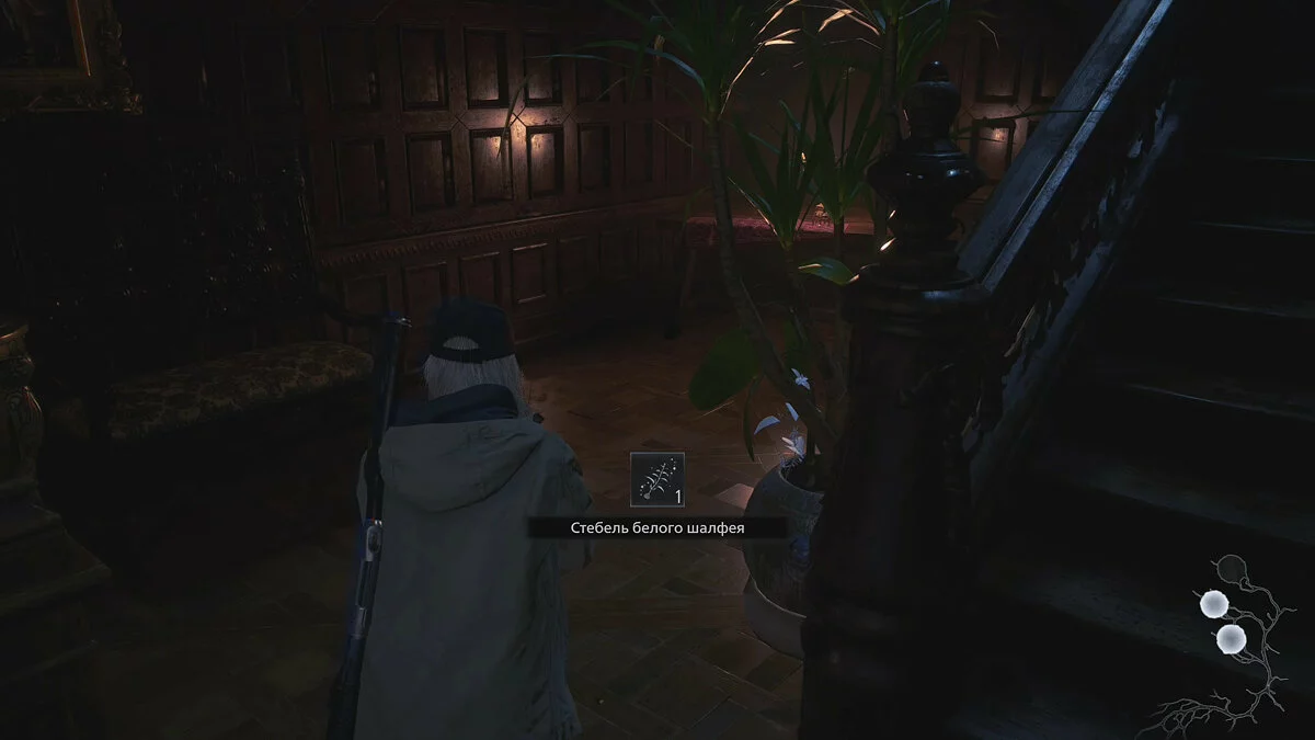 Пробегаем дальше и находим ещё один стебель белого шалфея. Отключаем куклу и прячемся от манекена.