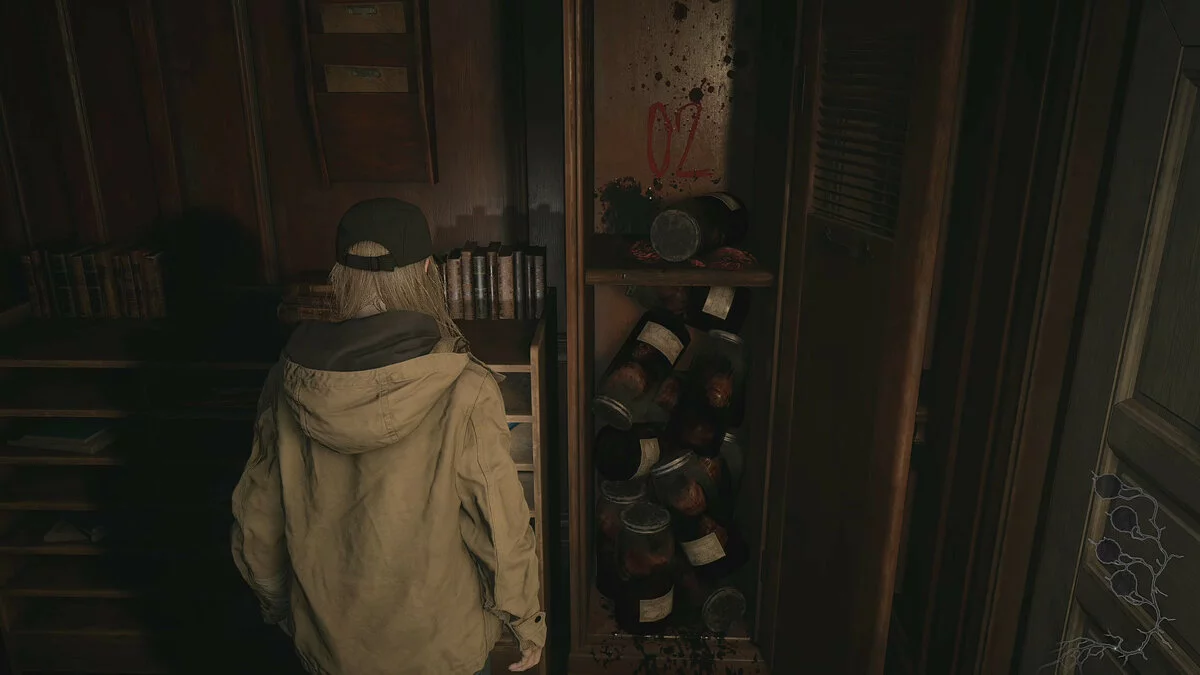 Сам процесс головоломки отталкивается от поиска цифр и использования их в правильном порядке. Подсказка о последовательности указана на задней стороне детского рисунка в коридоре — «Забитый шкафчик, картина на полке, захламлённый стол». Исходя из этого необходимо посмотреть на указанные в подсказке места и расположить цифры в этом же порядке: