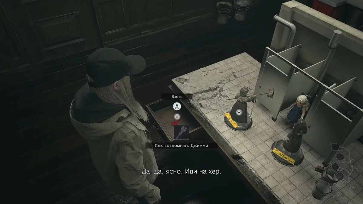 Из открывшегося ящика достаём ключ от комнаты Джимми. Также забираем обе куклы со стола.