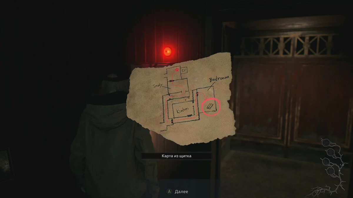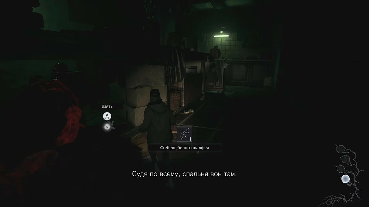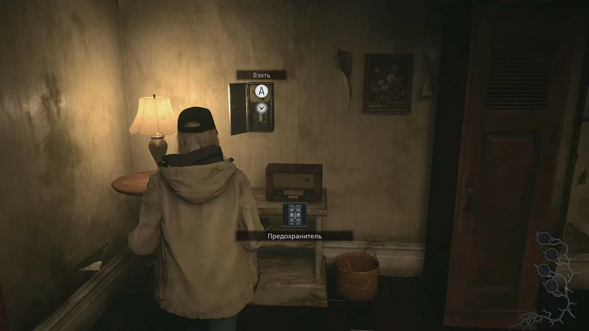 Идём спиной, следуем до кухни и разрушаем цветок. Проходим в спальню и забираем предохранитель.