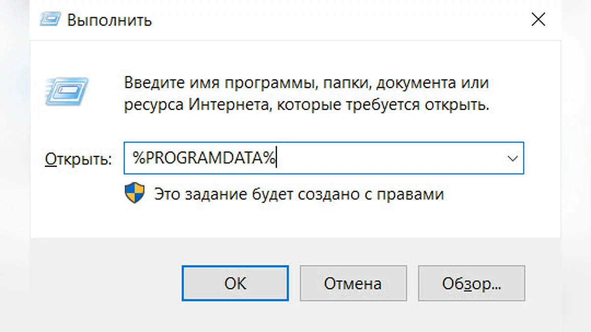 - С помощью комбинации «Win+R» открываем исполнитель, вводим туда сначала «%PROGRAMDATA%», потом «%LOCALAPPDATA%» без кавычек.
