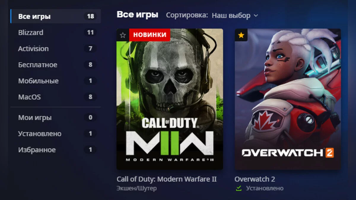 - Общее количество игр на аккаунте должно равняться 17 или 18, а Overwatch 2 будет вверху списка. Выбираете игру и нажимаете «Установить».