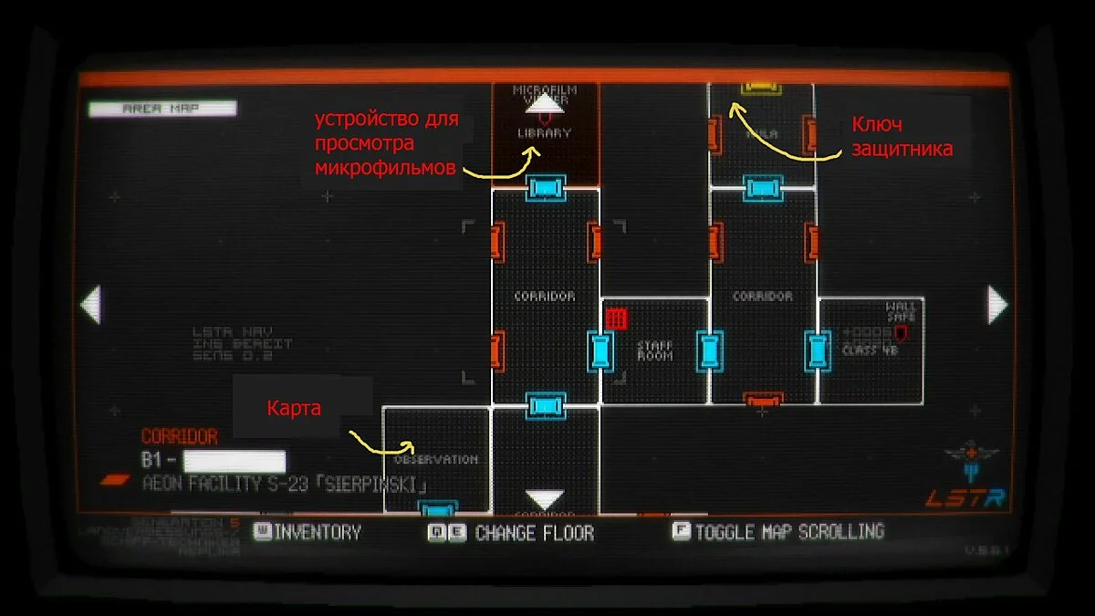 Первый сейф вы увидите в классе 4B, расположенном на уровне B1. Отправляемся в комнату наблюдения (Observation) на уровне B1 и подбираем ключ-карту (Aperture Card) в коробке. Проход в это помещение можно найти в коридоре, в верхней левой его части. Недалеко от неё также находится комната доступа (Surface Access). Дверь можно открыть защитным ключом (Protector Key), который лежит на оранжевой скамье в северо-западном углу в Ауле (Aula), рядом с Классом 4B.