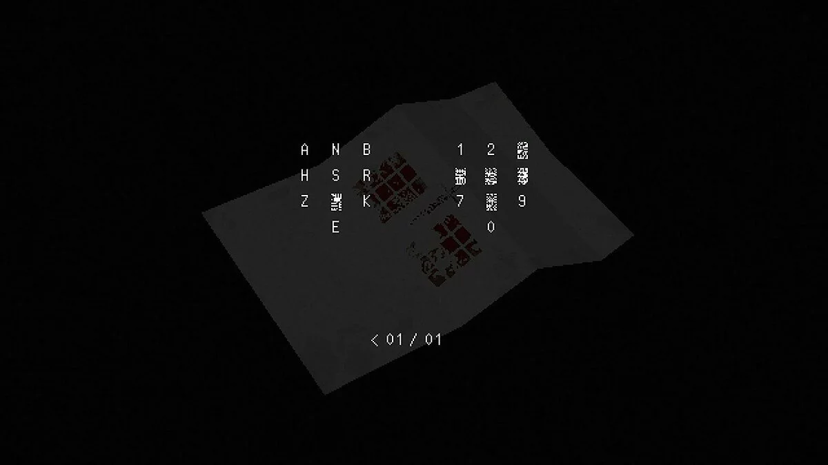 Используя предыдущий код и этот шифр, мы получили код 48434, что соответствует H?HBH. Единственная буква, присутствующая на панели ввода и отсутствующая в документе, — это F, что дает нам окончательную комбинацию — HFHBH.