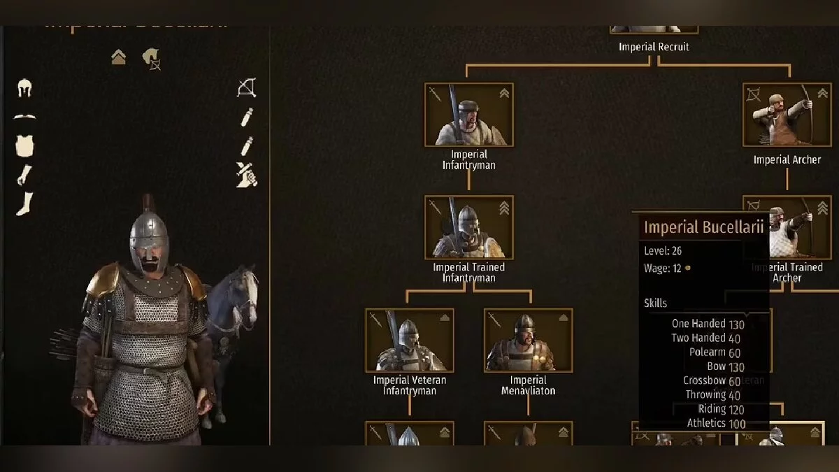 Несмотря на то что Букелларии во многом уступают предыдущим юнитам, приобрести их намного проще. Вы также можете заметить, что основным преимуществом этого отряда является неплохая броня. Конечно, для конных юнитов, которые в основном находятся вдали от эпицентра сражений, это не самый важный показатель. Но если враг подберётся слишком близко, Букелларии смогут продержаться намного дольше многих других юнитов.