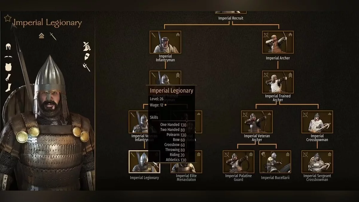 На протяжении всех изменений Имперские легионеры оставались одними из самых универсальных пехотных юнитов в игре. Бронированное войско 5-го уровня может похвастаться лучшим отношением брони к весу среди всех тяжелых отрядов в Bannerlord. С недавним усилением дротиков пила легионера также стала грозным оружием. Мы рекомендуем отключить огонь для своих легионеров по желанию, особенно если вы нуждаетесь в скоординированной атаке.