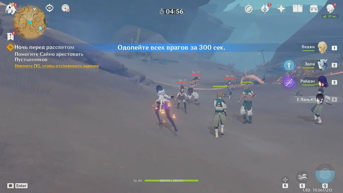 Пропустите два игровых дня и проследуйте за маркером на карте. Здесь вас будет ждать Сайно и несколько стражников. После появления Рахмана с отрядом игрокам нужно выполнить небольшое испытание: победите всех оппонентов за пять минут. Уровень врагов будет равняться вашему уровню мира, поэтому сложностей возникнуть не должно. После победы квест завершится.