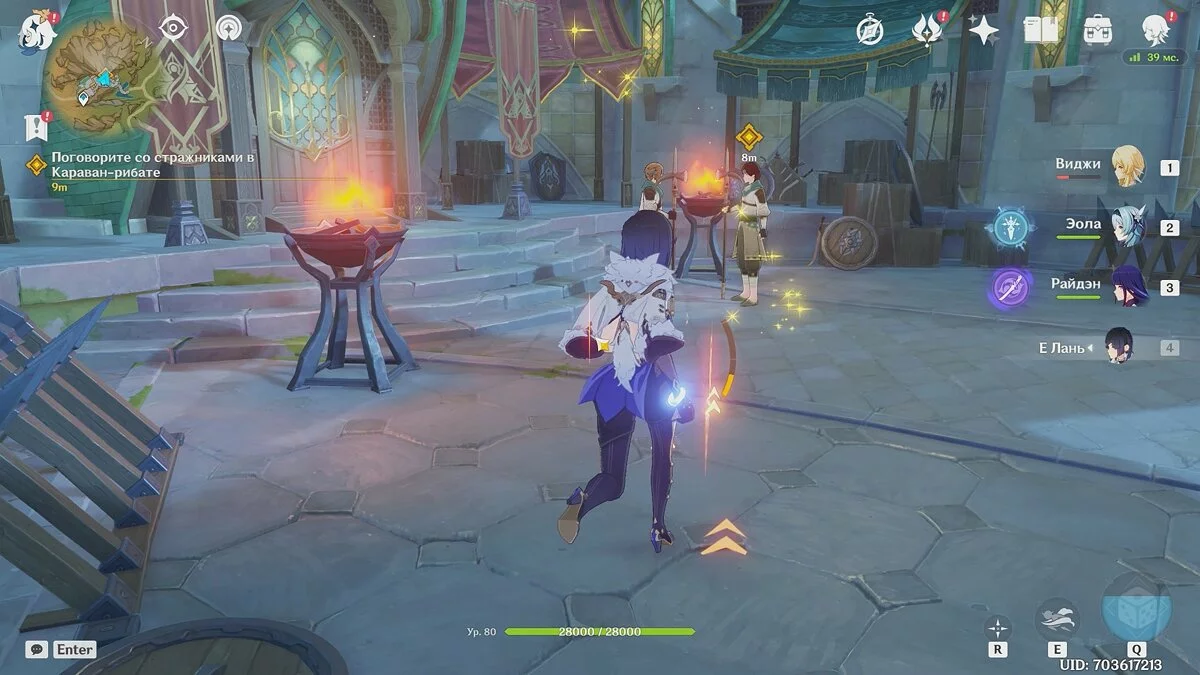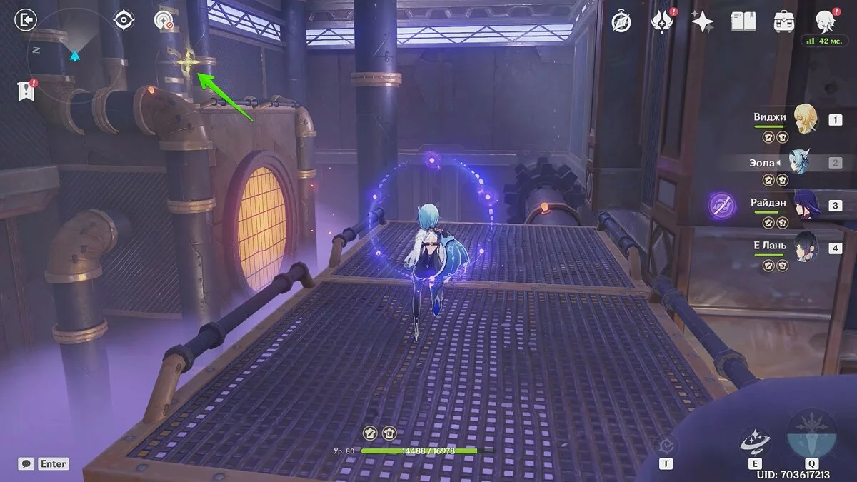 Сперва необходимо добраться до центрального зала, чтобы активировать лифт. По пути вам будут встречаться последователи Фатуи.