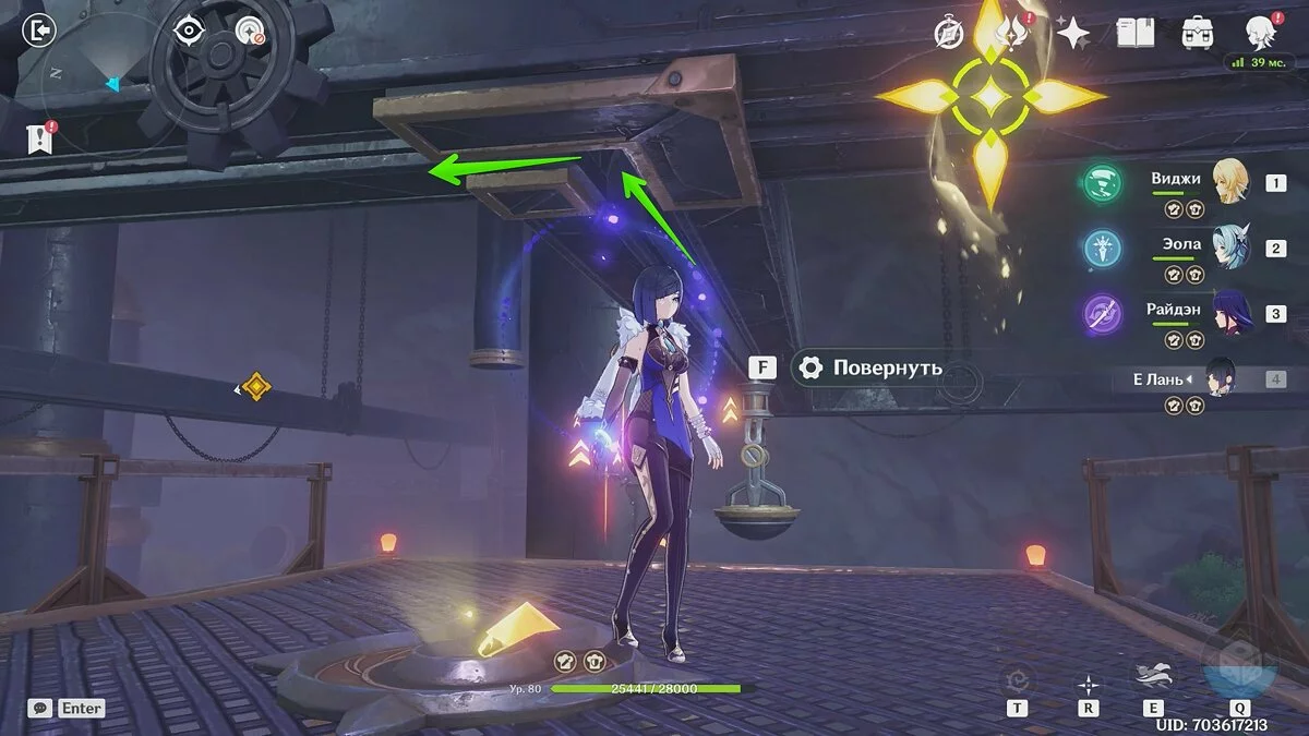 Пройдите на платформу справа и переключите устройство дважды. Это позволит добраться до следующего механизма. Сразитесь с приспешником Фатуи, осмотрите обычный сундук. Платформу нужно повернуть три раза.