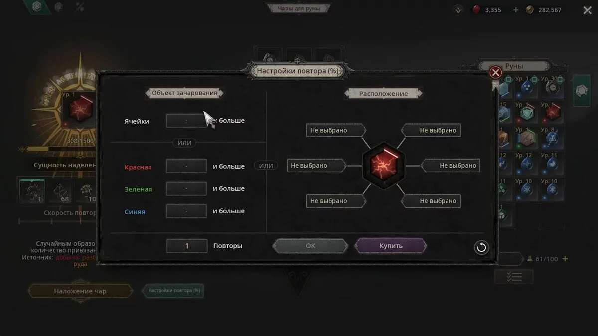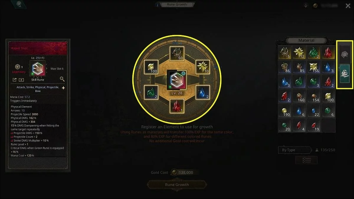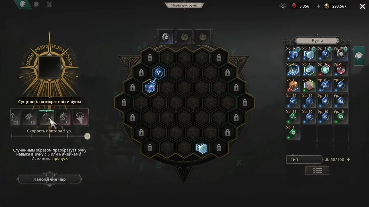 С помощью них игроки вправе запустить автоматическое создание необходимой руны, пока не добьётесь нужного количество слотов, цвет и расположение связей. Это действие продолжит выполняться до тех пор, пока у игрока есть нужное количество ресурсов.