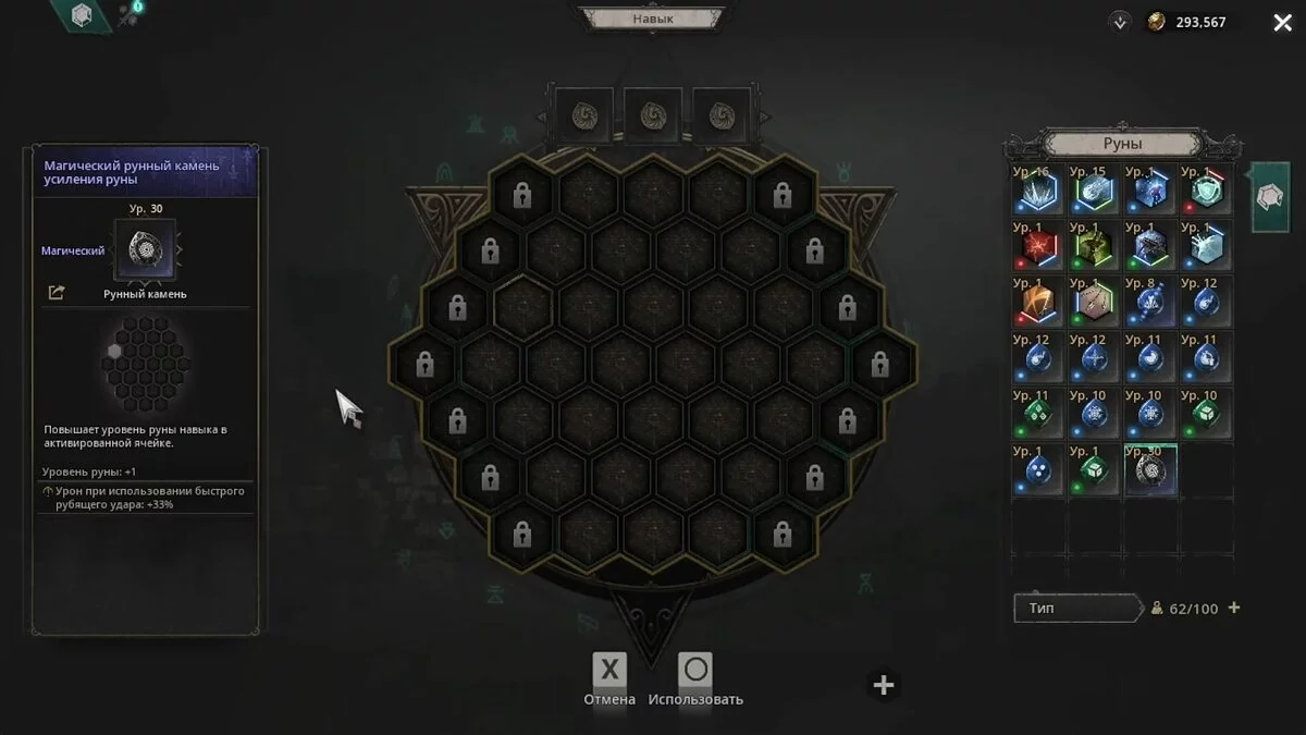 На доске навыков игроку доступно три слота под рунические камни — большее количество использовать не получится. Также стоит обратить внимание, что эти артефакты не могут быть использованы вместе при зачаровании одного и того же слота на доске.