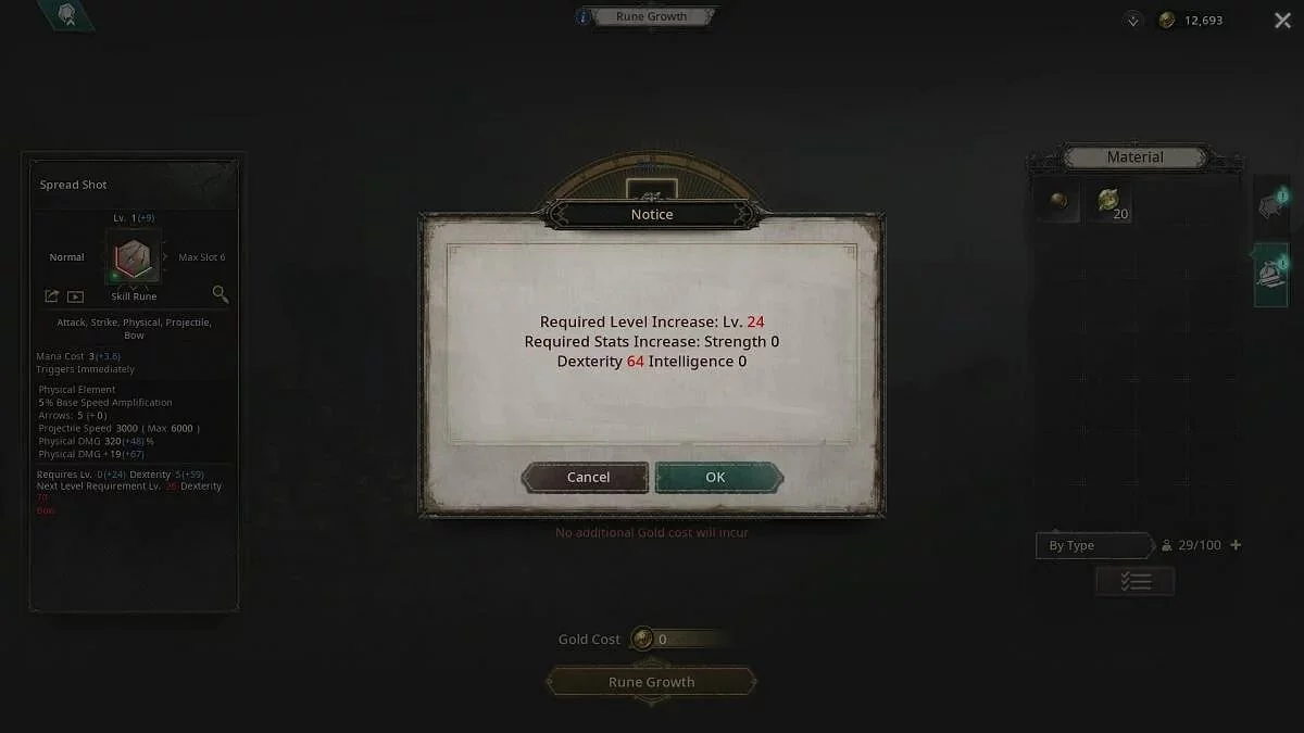 Если прокачать руну не получится, то на экране отобразится соответствующее сообщение, отмеченное на скриншоте выше.