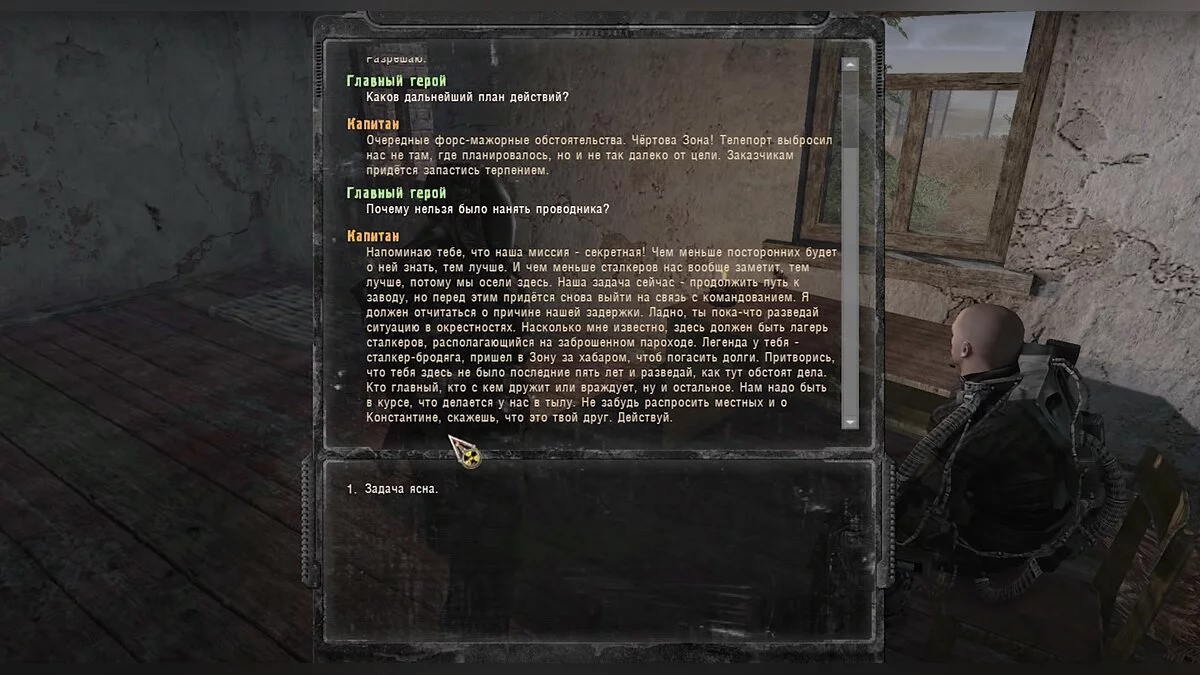 Вы окажетесь рядом с незапертым вагончиком. Гоша Кнут хочет, чтобы герой ликвидировал одного сталкера. У вас есть выбор — отказаться или согласиться. В обоих случаях квест завершится сразу или после выполнения убийства. В награду Гоша обещает 100 000 рублей, однако по факту вы их не получите. Кажется, что в этой истории лучше отказаться от выполнения.