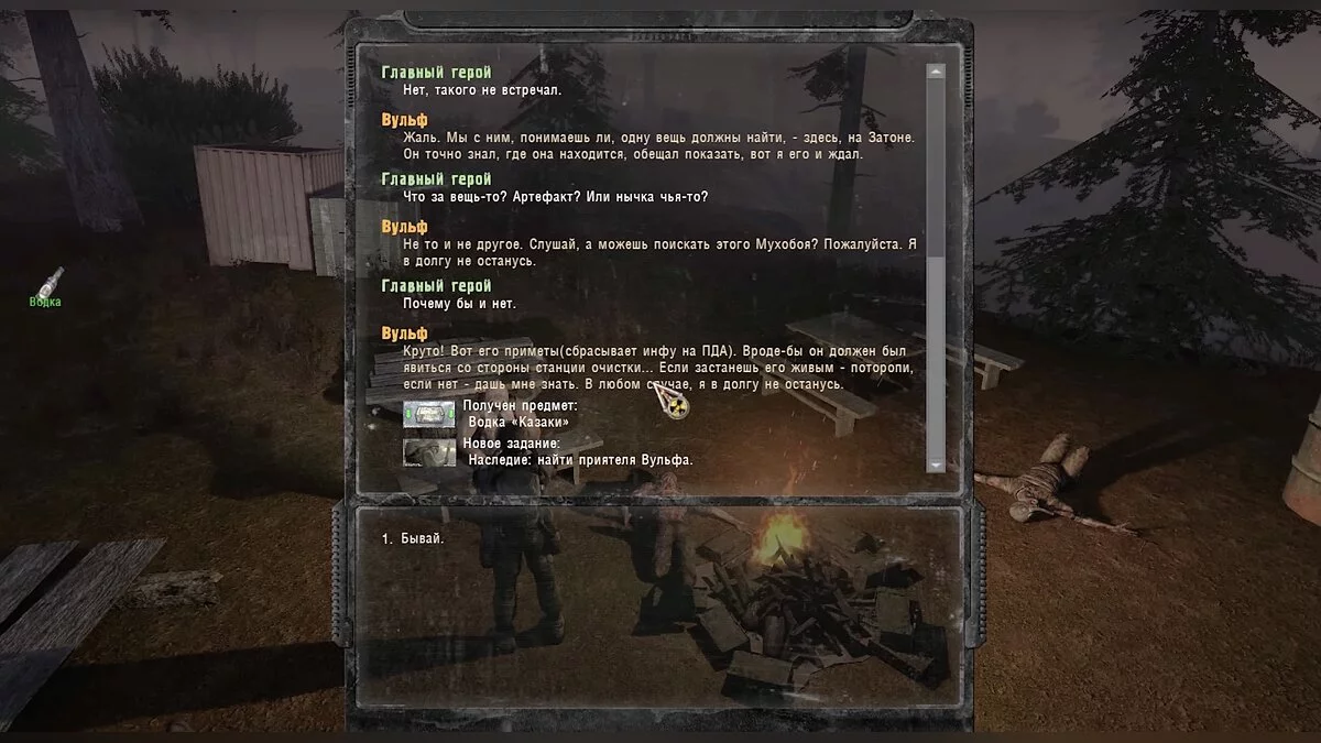 Бессмертный бегает по всей локации, поэтому придется его ловить. Как только вы встретитесь, герой отдаст гриб, а сталкер передаст ему ПДА Ноя. Вернитесь с ним к Вульфу. Сталкер расскажет про артефакт «Компас», который вам и нужно найти. Также Вульф предложит немного припасов в награду за освобождение, но лучше от них отказаться за увеличение уважения.