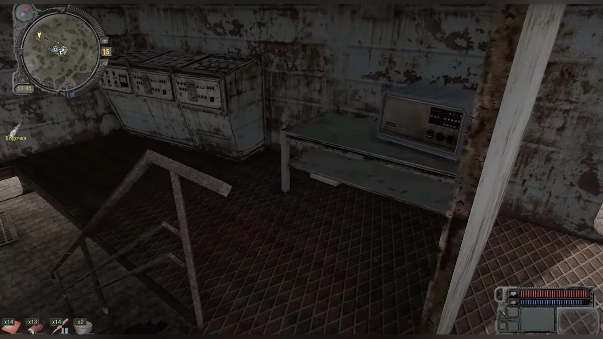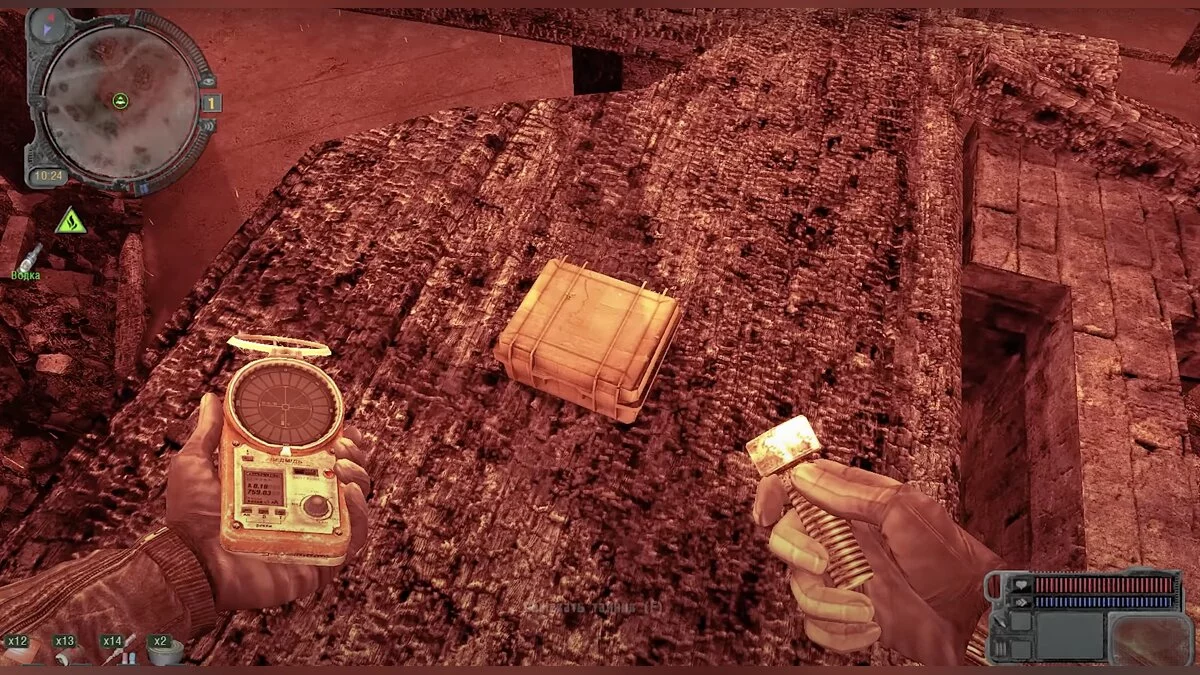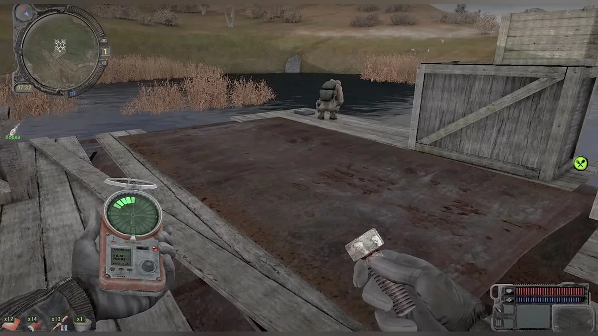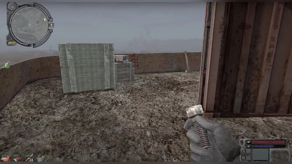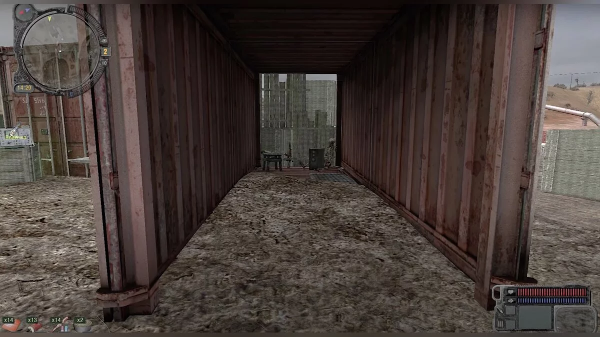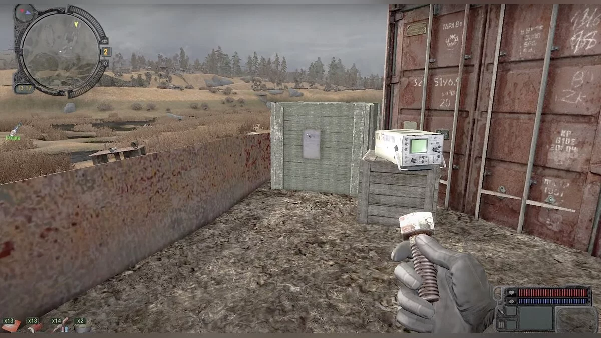 Рядом с местом, где вы нашли кувалду (за контейнерами), висит записка. Прочитайте ее. В контейнере справа сейф, но когда вы захотите его собрать, аномалия вас отбросит. Чуть правее записки — устройство, но оно не работает из-за отсутствующего аккумулятора. Таких устройств рядом три, а значит нужно найти три аккумулятора. Два можно купить у торговца на Шевченко. Хотя продается он в штучном экземпляре, ассортимент обновляется после каждой загрузки. Как только вы купите один — сохранитесь и загрузите игру. Можно купить второй и третий, однако устройства довольно дорого стоят. Третий лежит на самом корабле. Поднимитесь в капитанскую рубку на самый верх. Под стеллажом стоит устройство.