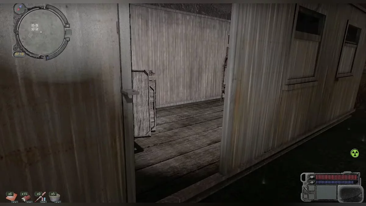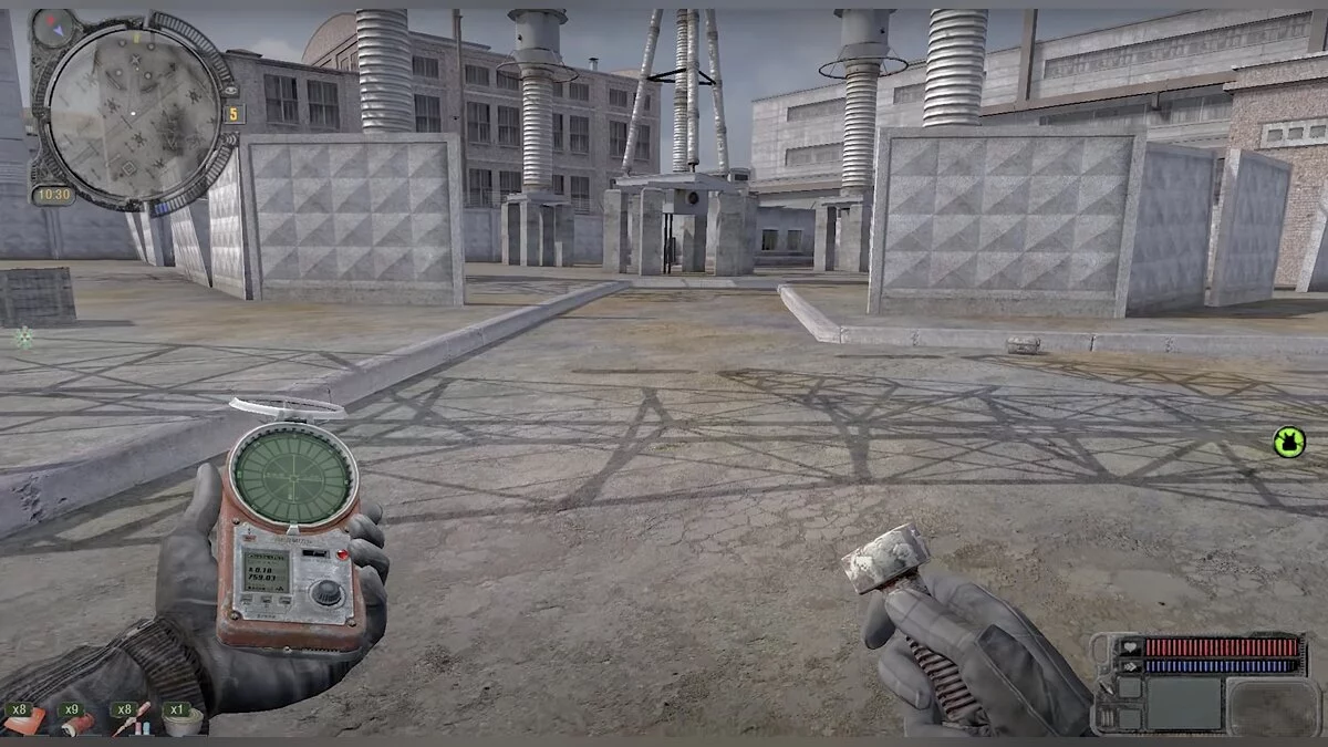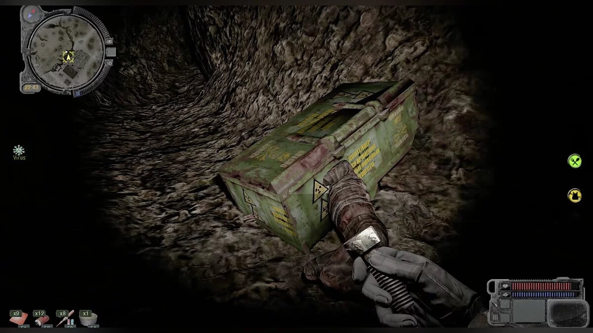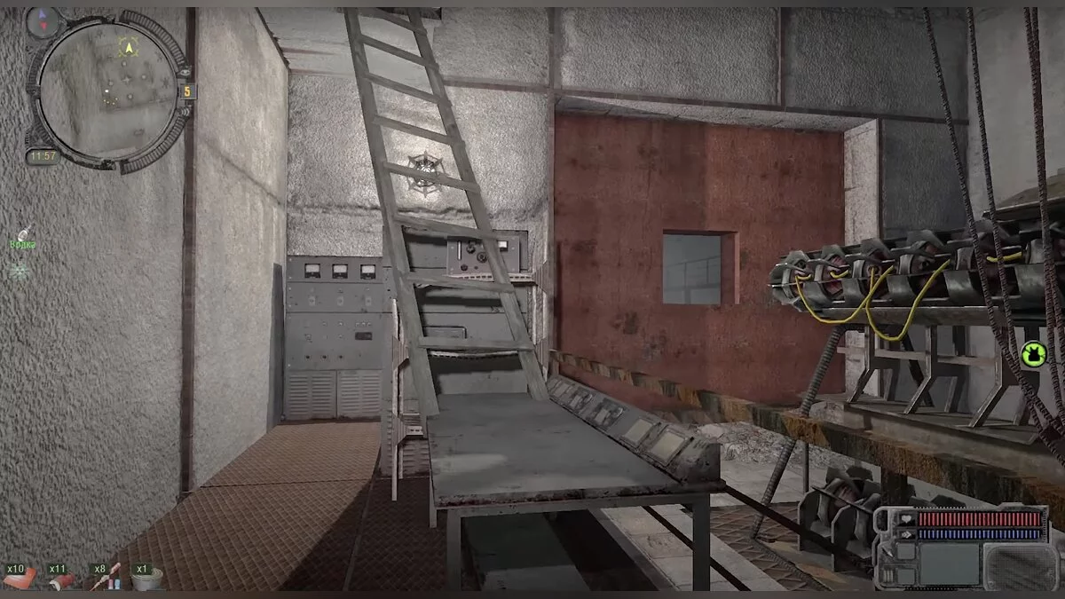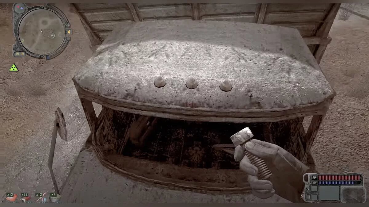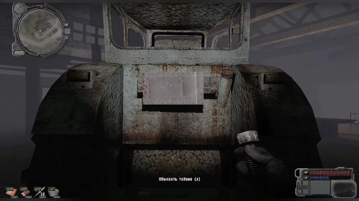 Рядом с местом, где вы нашли кувалду (за контейнерами), висит записка. Прочитайте ее. В контейнере справа сейф, но когда вы захотите его собрать, аномалия вас отбросит. Чуть правее записки — устройство, но оно не работает из-за отсутствующего аккумулятора. Таких устройств рядом три, а значит нужно найти три аккумулятора. Два можно купить у торговца на Шевченко. Хотя продается он в штучном экземпляре, ассортимент обновляется после каждой загрузки. Как только вы купите один — сохранитесь и загрузите игру. Можно купить второй и третий, однако устройства довольно дорого стоят. Третий лежит на самом корабле. Поднимитесь в капитанскую рубку на самый верх. Под стеллажом стоит устройство.