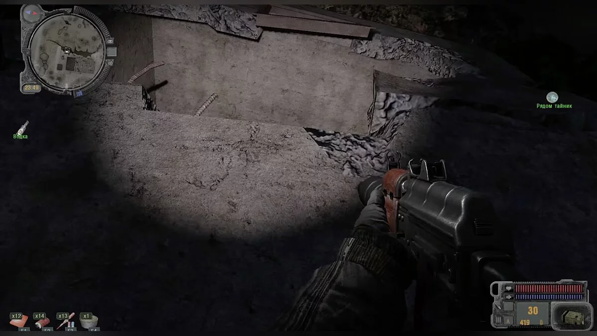 Обратите внимание, что у сталкеров на Шевченко можно купить наводки с тайниками, но не больше одной за раз. Стоят они всегда одинаково — 5000. В каждом таком схроне — запчасть винтовки ТРс-301.