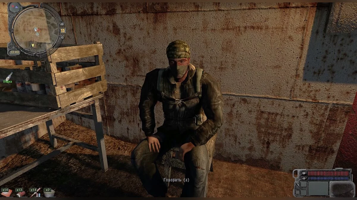 Сталкер предложит с ним выпить. Не отказывайтесь. В ходе разговора новый знакомый начнет оскорблять главного героя. Отвечайте не агрессивно и ситуация будет пройдена.