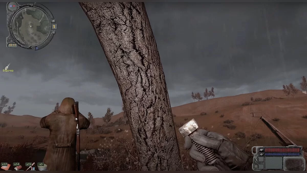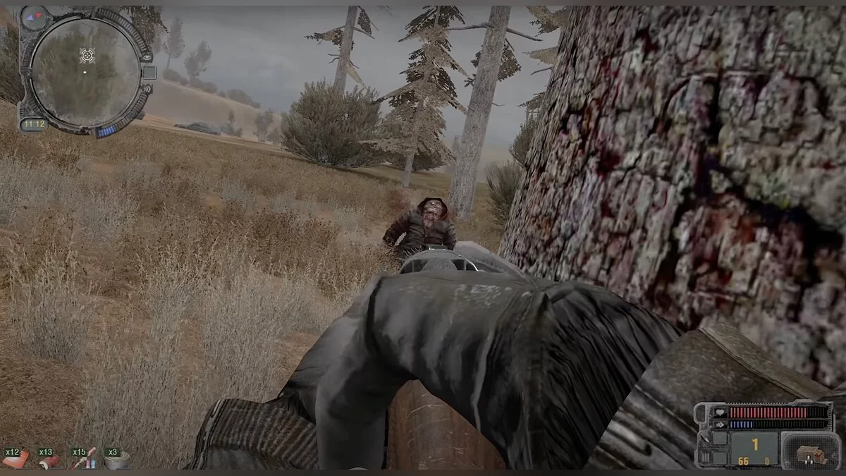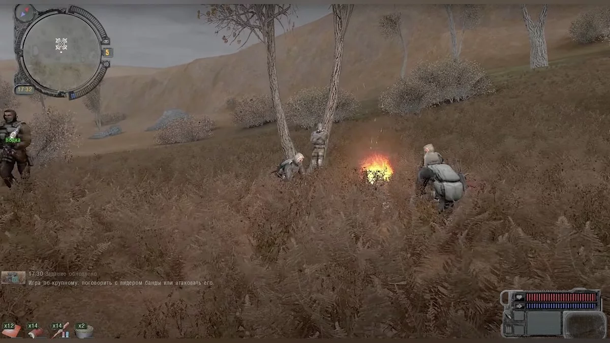 Договорившись, направляйтесь к точке. Там уже ждет Кощей. Он покажет, где засел с бандитами Жиган и откуда пойдут торговцы. Сразу после диалога у вас появится возможность подняться на дерево рядом. Очень скоро появится небольшая группа сталкеров. Стрелять в них с безопасного расстояния бесполезно. Дождитесь, когда Кощей скажет, что торговцы уже рядом. У вас будет несколько секунд, чтобы спугнуть караван. В случае провала Кощей начнет убегать. Убив его, вы все равно получите сведения о местонахождении лекарств.