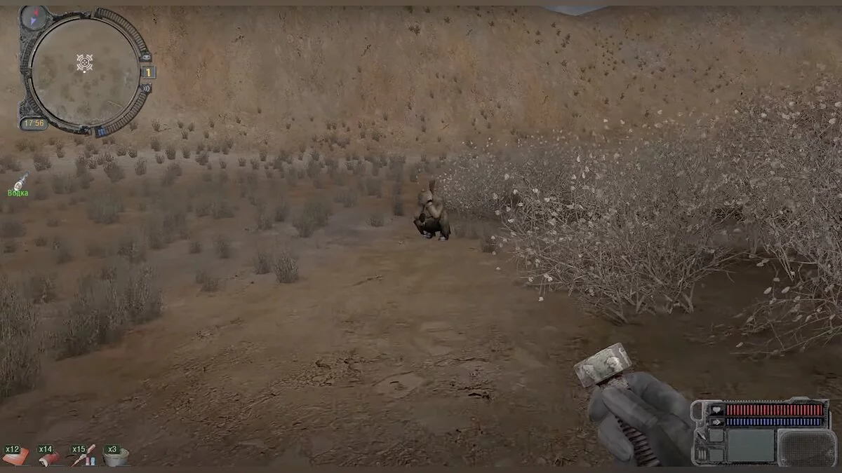 Первое побочное задание находится слева и внизу от лесопилки. На сталкера Вульфа напали снорки. Убейте их и поговорите с ним. Получите водку. Вульф просит найти его приятеля — Мухобоя. Посетите станцию переработки отходов.