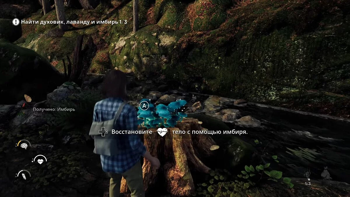 Двигаемся вперёд, пока девушка не заметит цветок и не успокоится. Сразу жа собираем лаванду и идём по узкому мостику. Не забываем восполнять жизненные показатели героини с помощью найденных растений.
