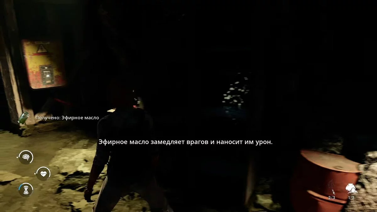 Возле электрощита также находим эфирное масло, имбирь и огненный хлыст. Изучаем запись о монстре на стене.