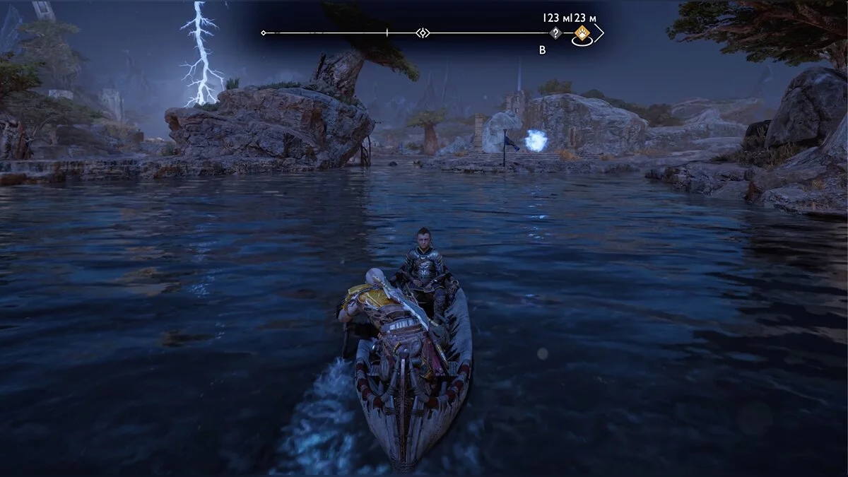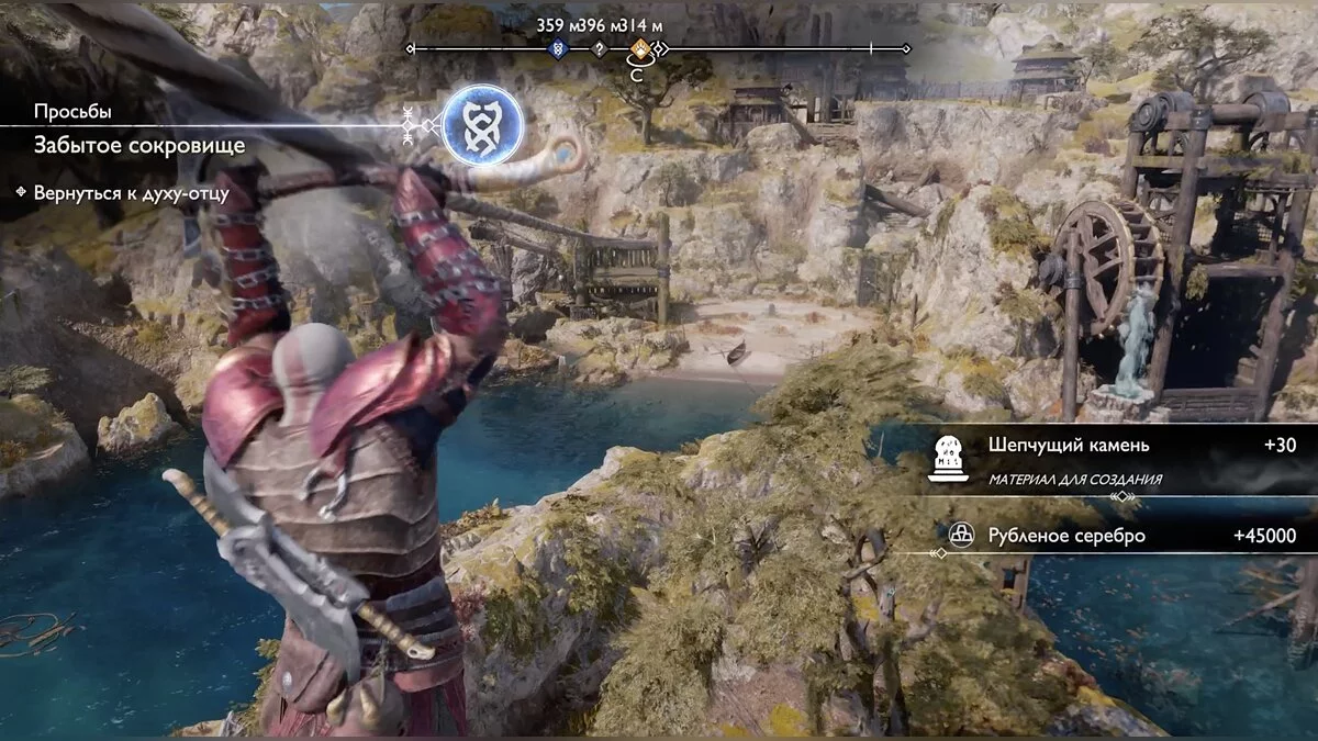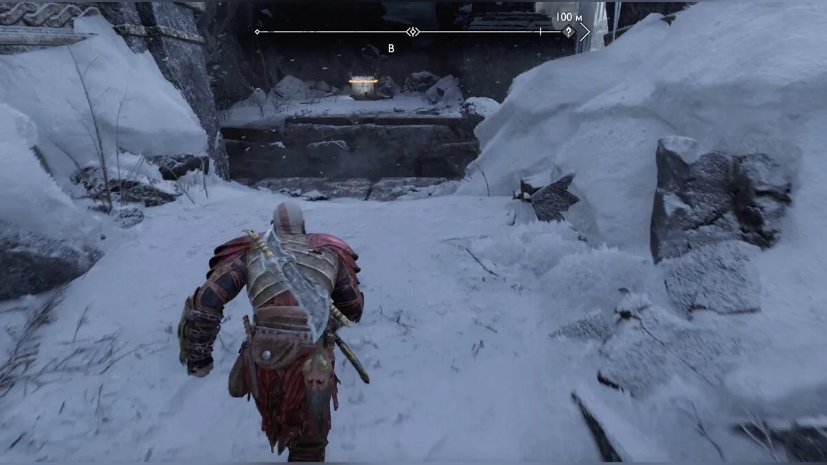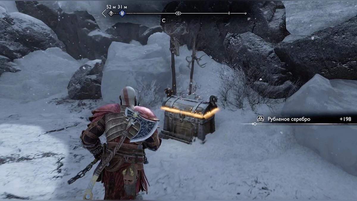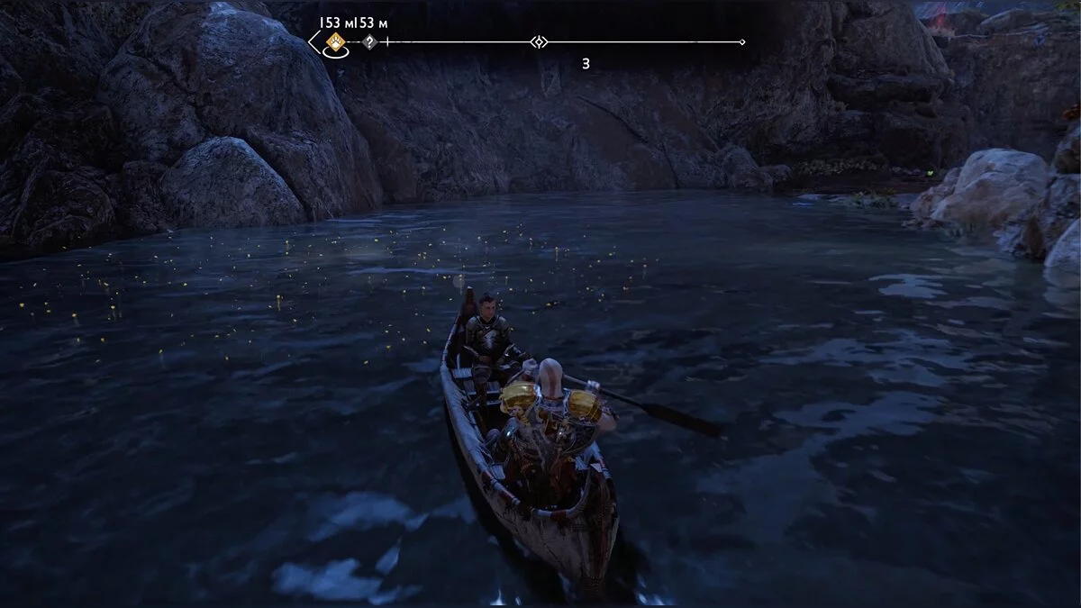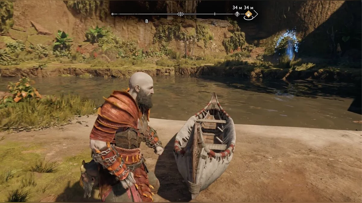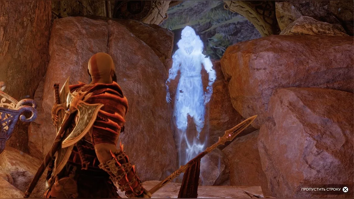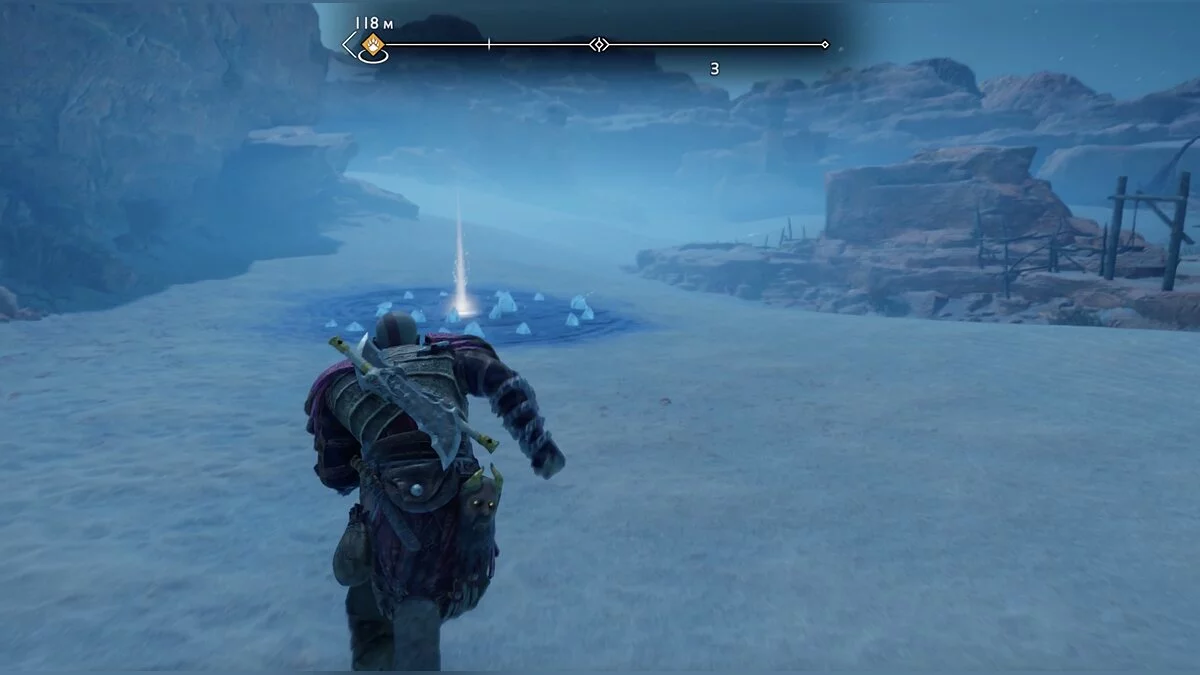 Когда вы будете искать молот Дурлина на берегу с драконьей статуей, то поднимитесь по деревянной конструкции, чтобы перепрыгнуть на большой мост. Кратос встретит призрака, который расскажет, что вместе с сыном искал сокровище, но в итоге они разделились. Вам нужно найти и сокровище, и сына.