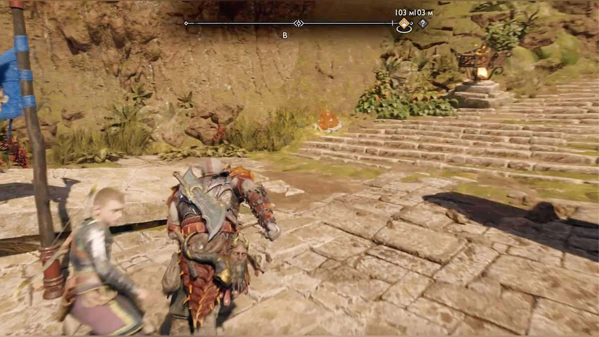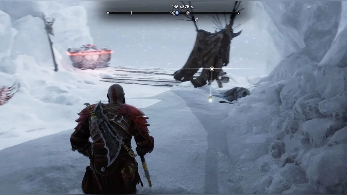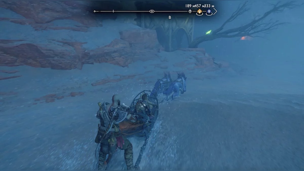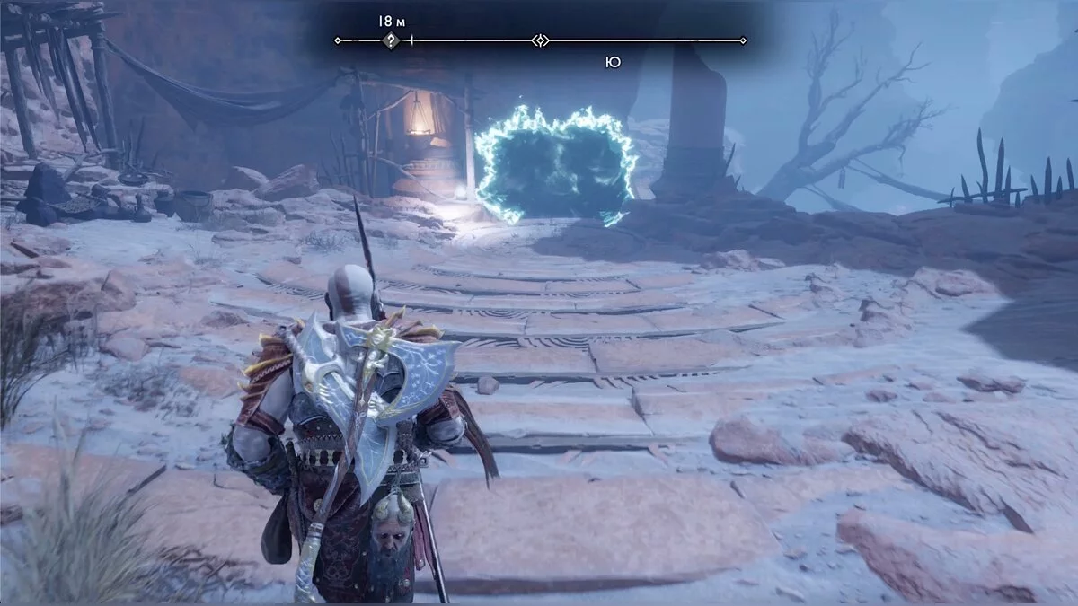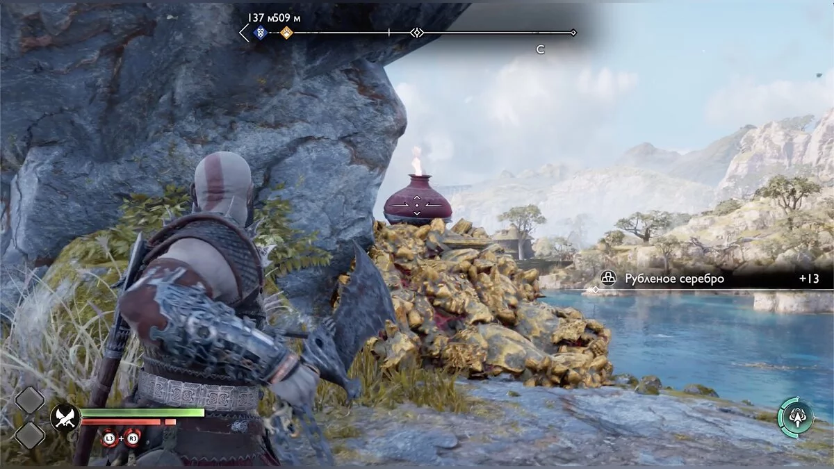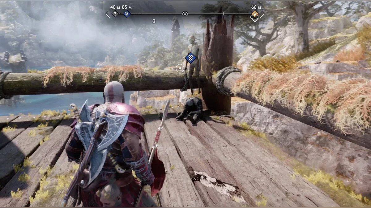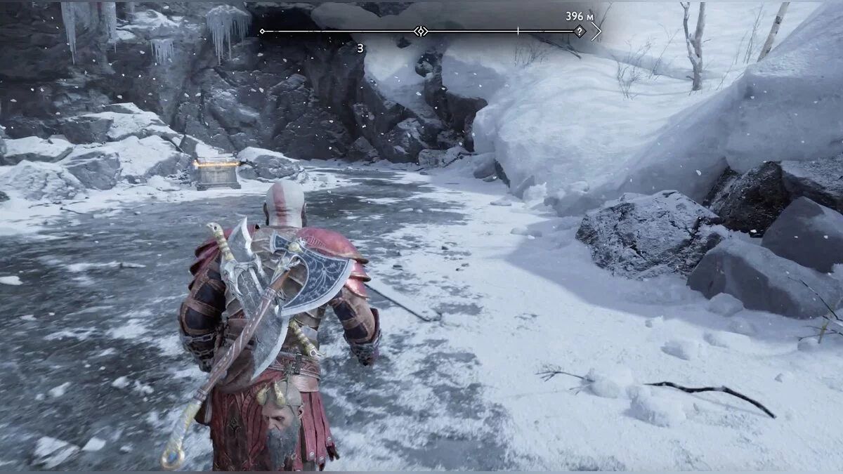 Когда вы будете искать молот Дурлина на берегу с драконьей статуей, то поднимитесь по деревянной конструкции, чтобы перепрыгнуть на большой мост. Кратос встретит призрака, который расскажет, что вместе с сыном искал сокровище, но в итоге они разделились. Вам нужно найти и сокровище, и сына.
