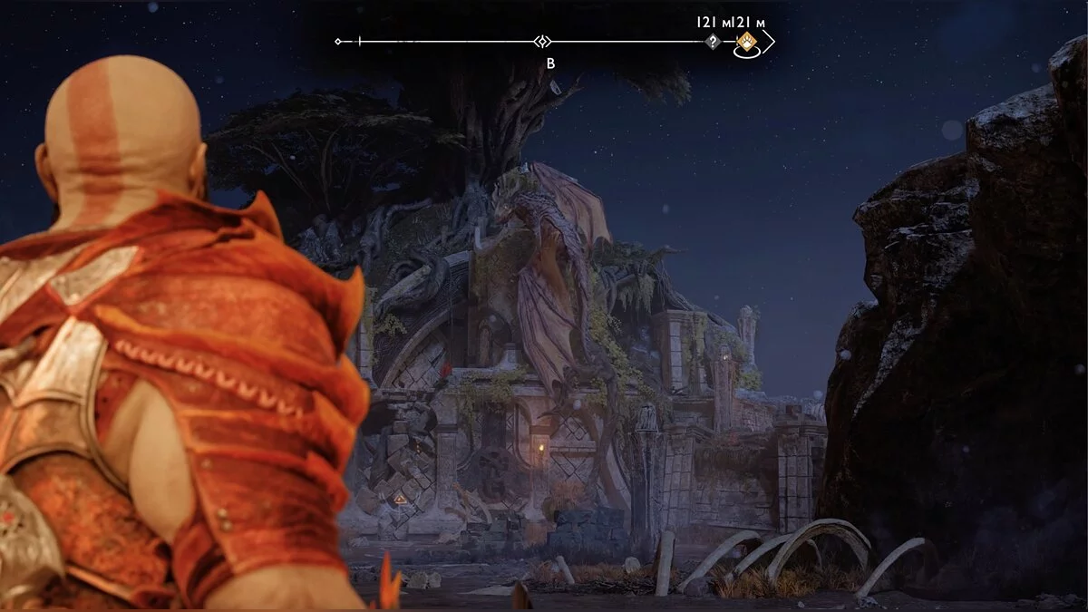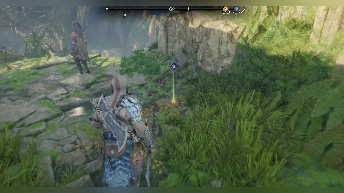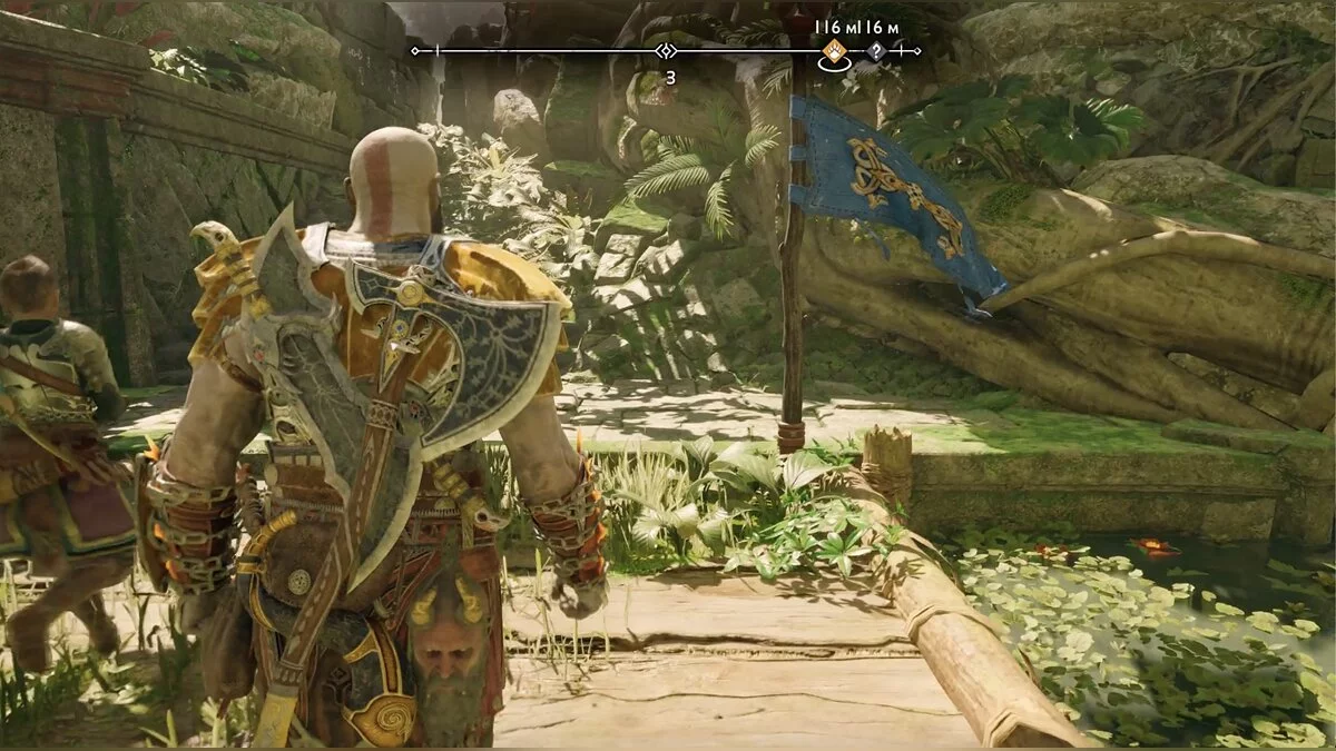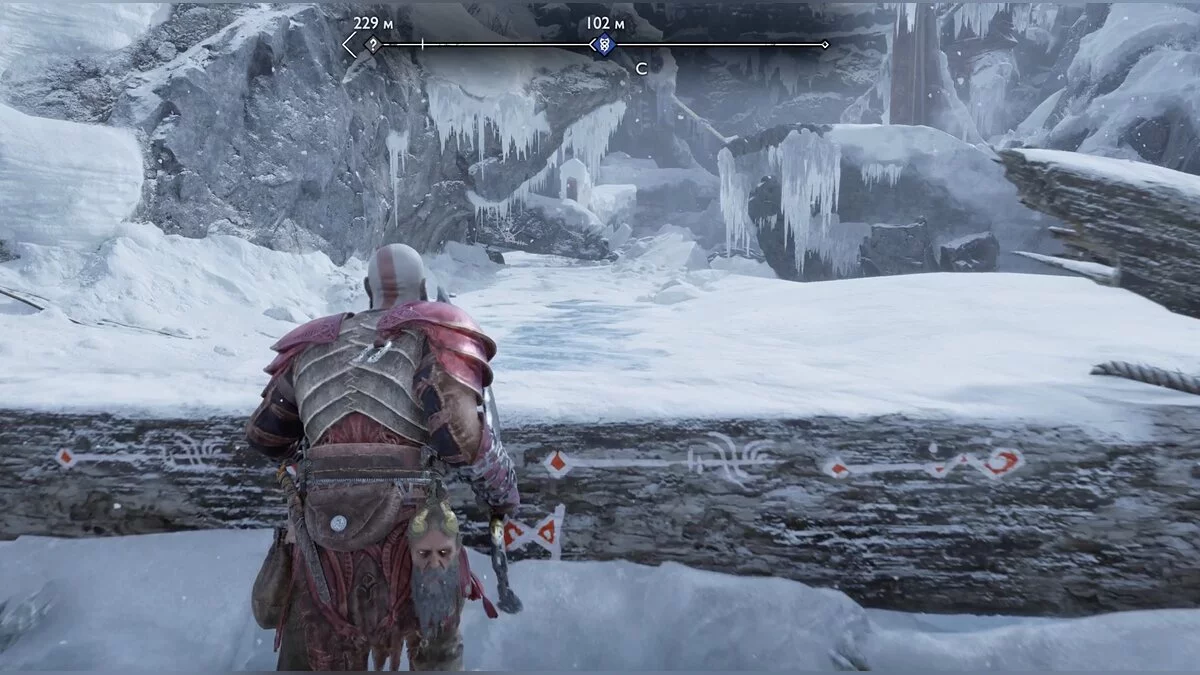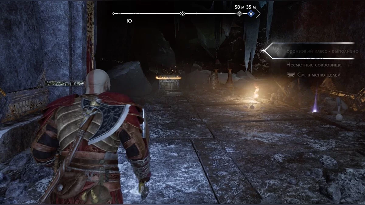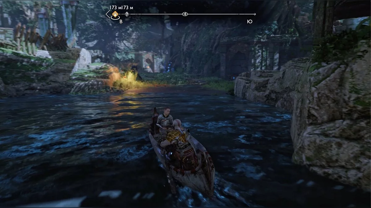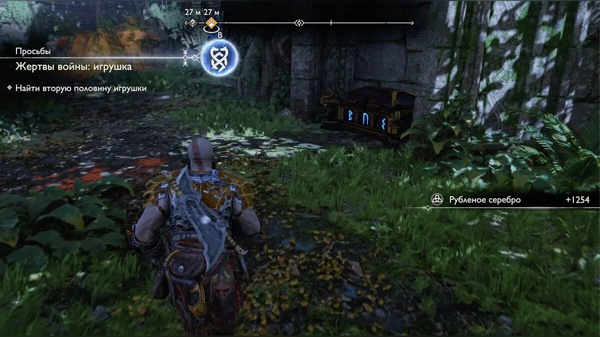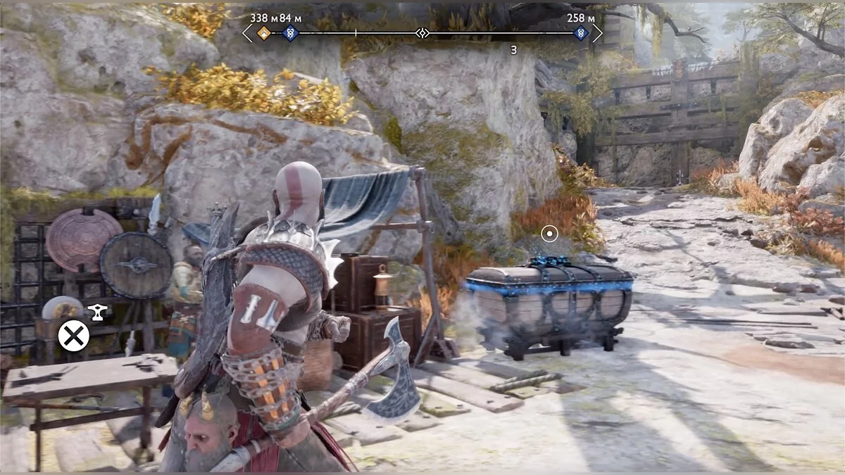 Когда вы будете искать молот Дурлина на берегу с драконьей статуей, то поднимитесь по деревянной конструкции, чтобы перепрыгнуть на большой мост. Кратос встретит призрака, который расскажет, что вместе с сыном искал сокровище, но в итоге они разделились. Вам нужно найти и сокровище, и сына.