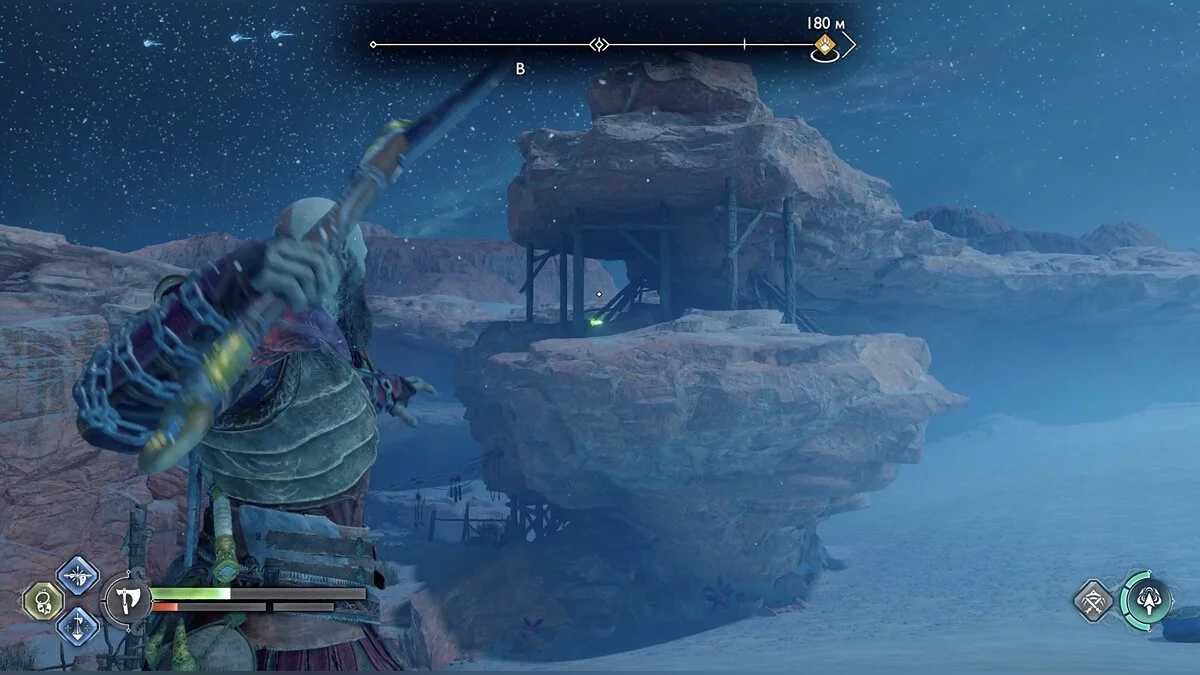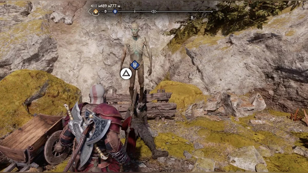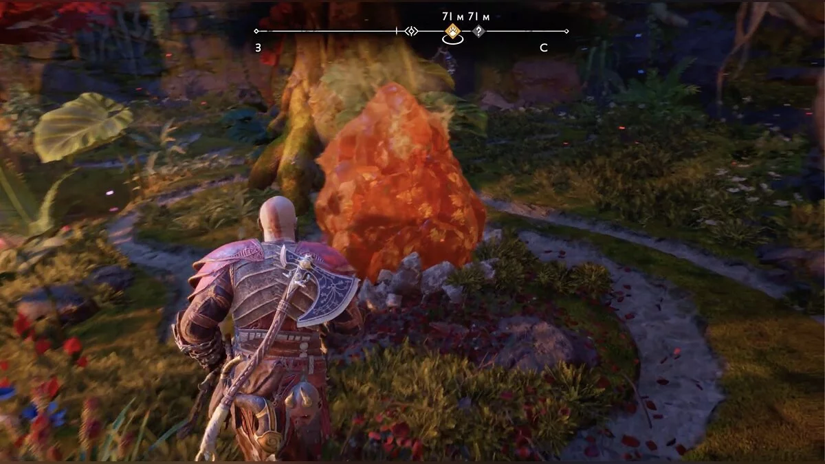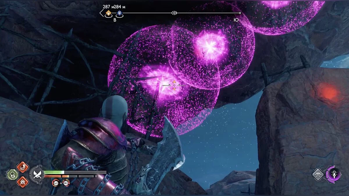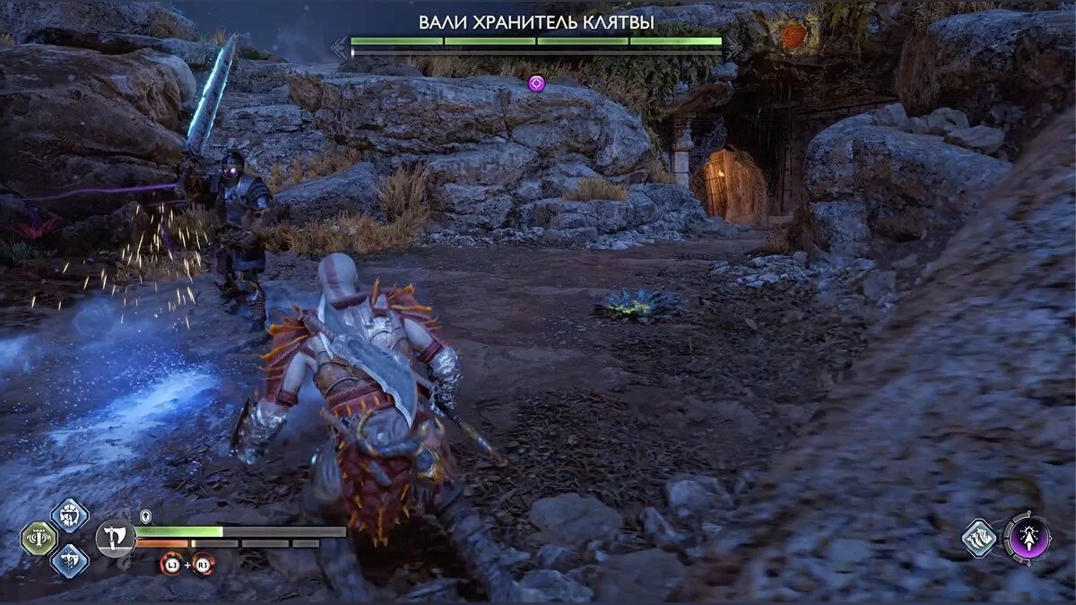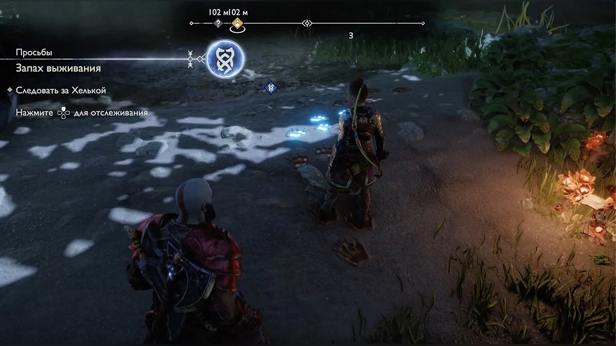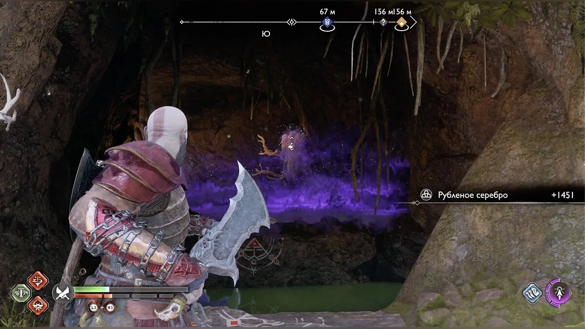 Чтобы найти эту просьбу, обязательно разыщите алтарь и установите ночь. От главного входа в Кратер идите в левую сторону, никуда не сворачивая. Спускайтесь с уступа и продолжайте держаться левой стороны. Перепрыгните пропасть и перепрыгните с помощью клинков в ранее недоступную часть локации. Как только вы поднимитесь на уступ, увидите рядом тушу животного. Атрей подскажет, что где-то поблизости Пожиратель душ. Это тот самый враг, которому нужно швырять в грудь его же осколки.