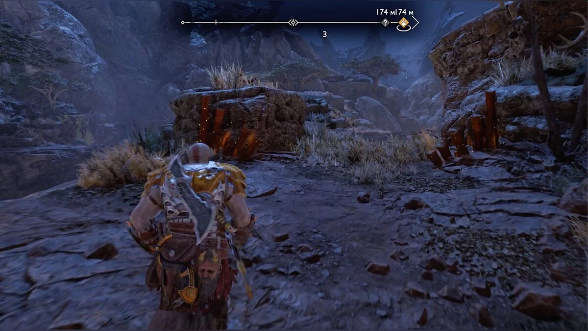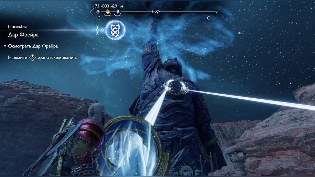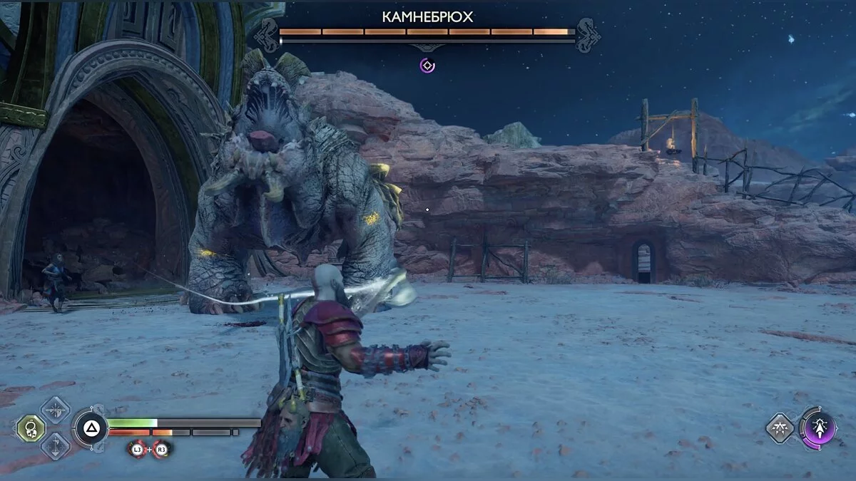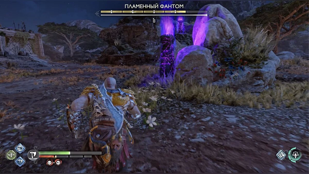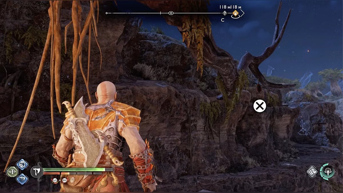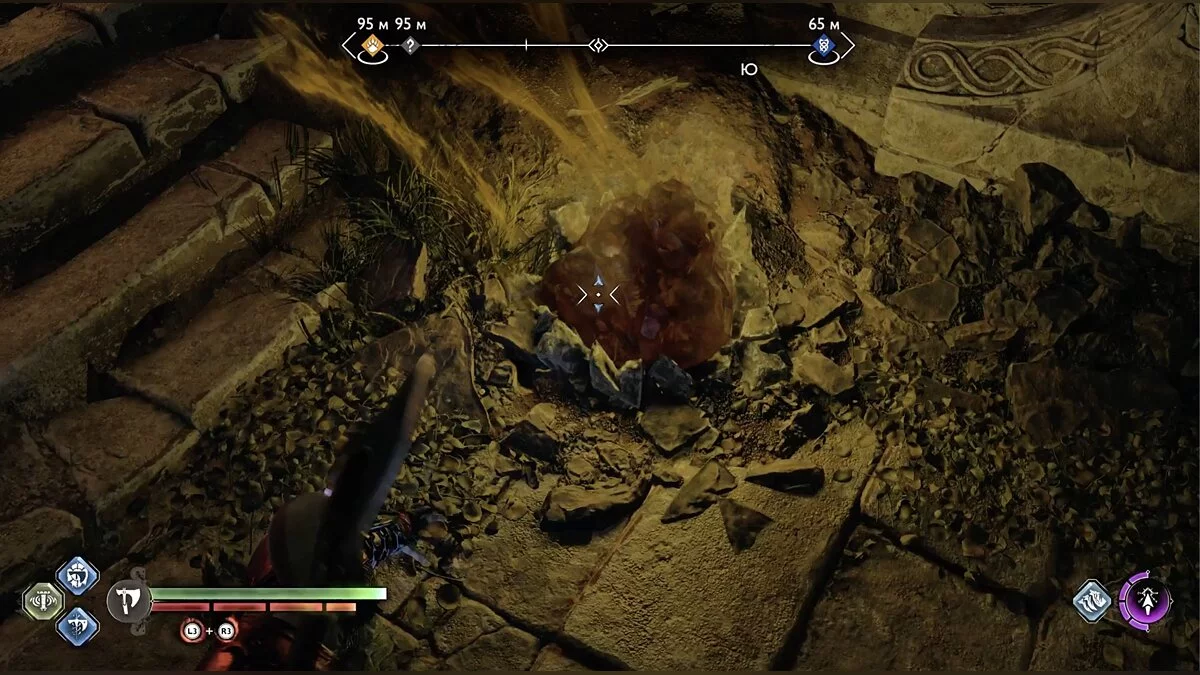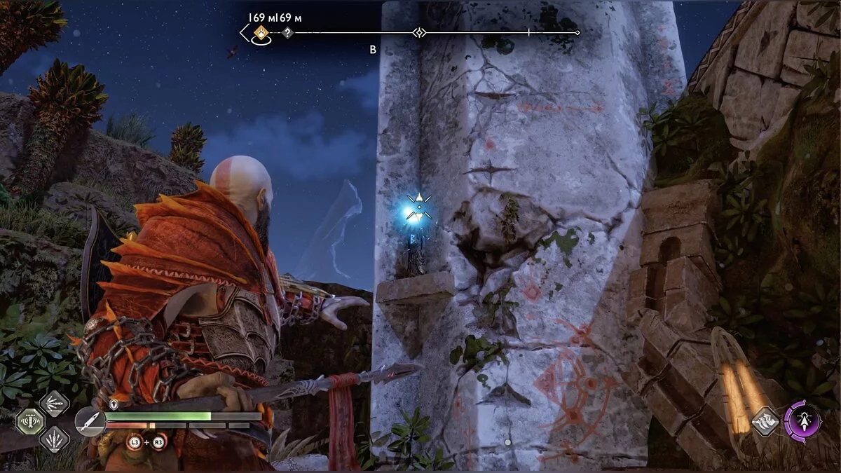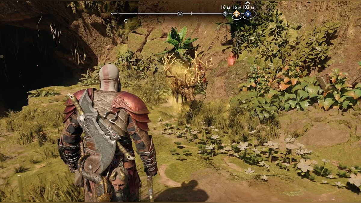 Чтобы найти эту просьбу, обязательно разыщите алтарь и установите ночь. От главного входа в Кратер идите в левую сторону, никуда не сворачивая. Спускайтесь с уступа и продолжайте держаться левой стороны. Перепрыгните пропасть и перепрыгните с помощью клинков в ранее недоступную часть локации. Как только вы поднимитесь на уступ, увидите рядом тушу животного. Атрей подскажет, что где-то поблизости Пожиратель душ. Это тот самый враг, которому нужно швырять в грудь его же осколки.