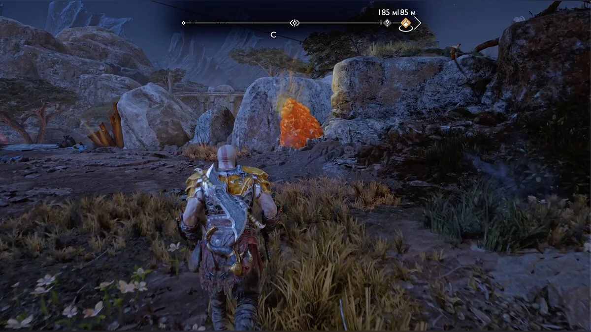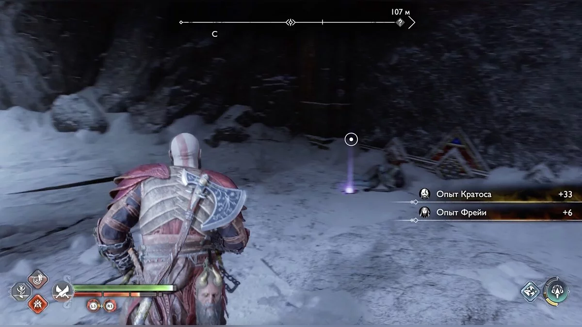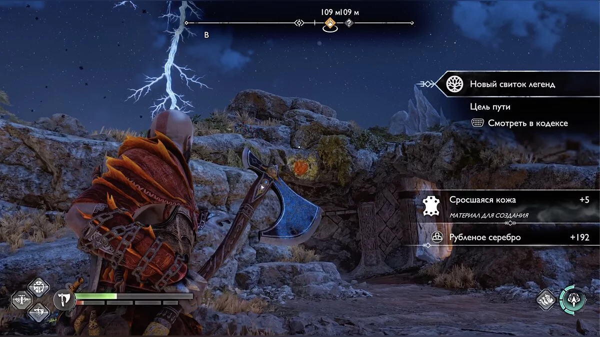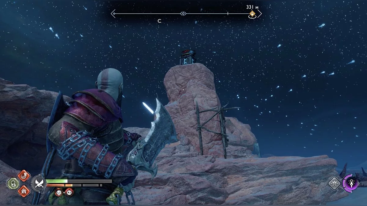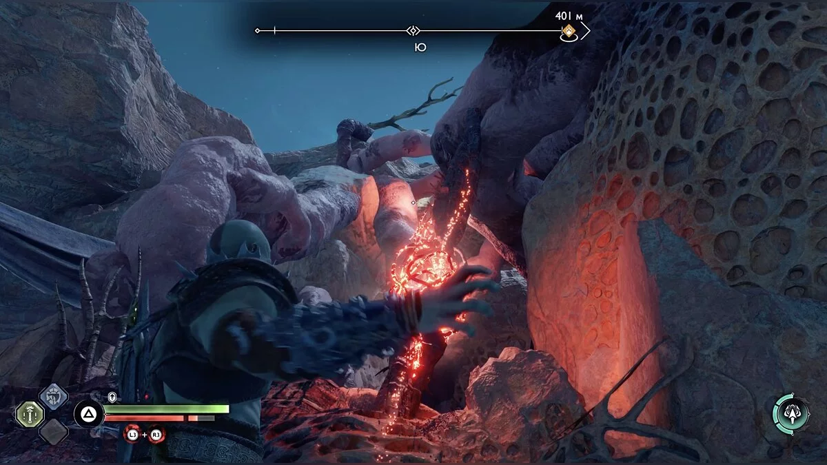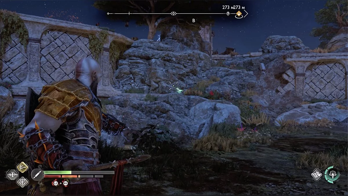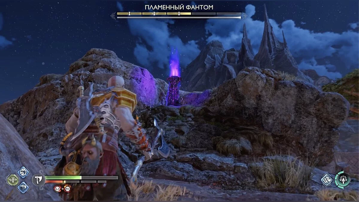 Чтобы найти эту просьбу, обязательно разыщите алтарь и установите ночь. От главного входа в Кратер идите в левую сторону, никуда не сворачивая. Спускайтесь с уступа и продолжайте держаться левой стороны. Перепрыгните пропасть и перепрыгните с помощью клинков в ранее недоступную часть локации. Как только вы поднимитесь на уступ, увидите рядом тушу животного. Атрей подскажет, что где-то поблизости Пожиратель душ. Это тот самый враг, которому нужно швырять в грудь его же осколки.