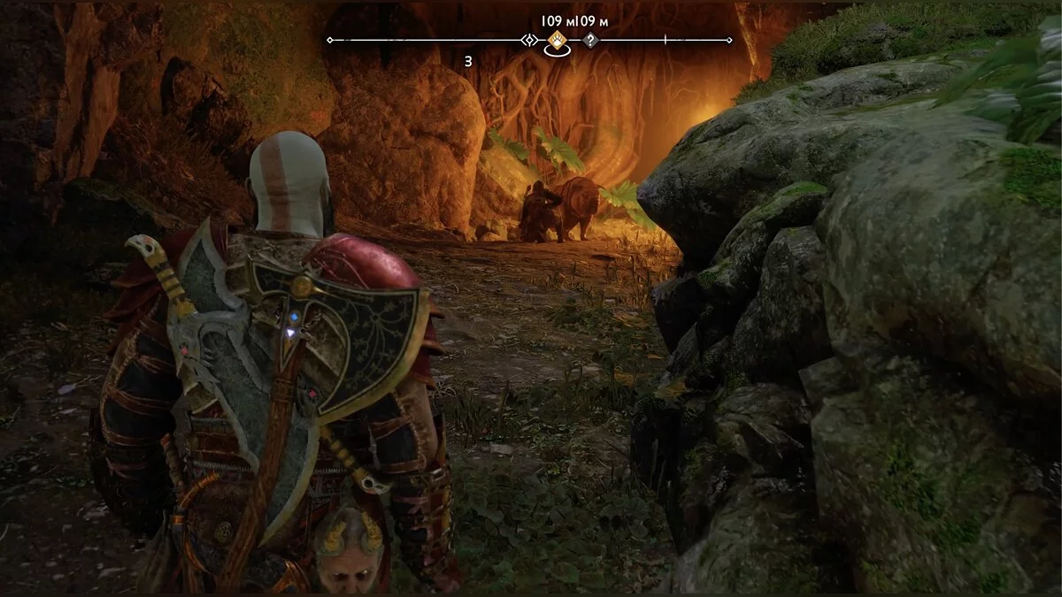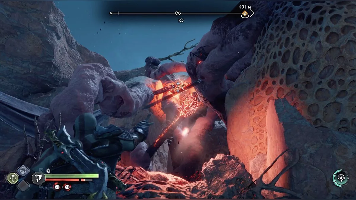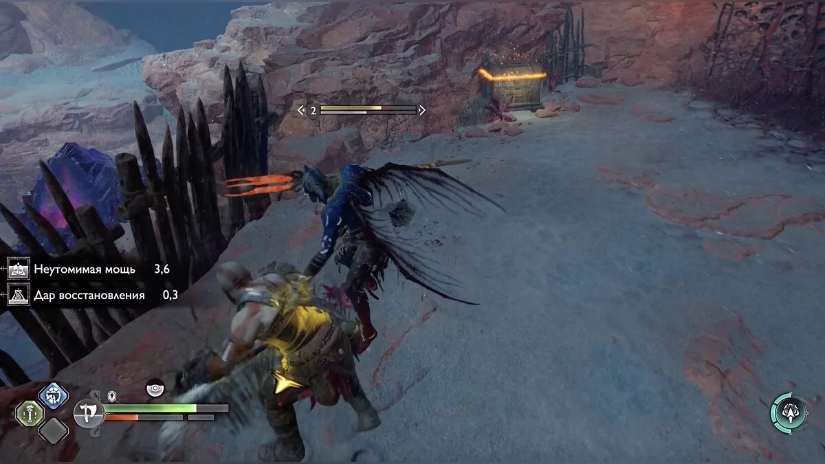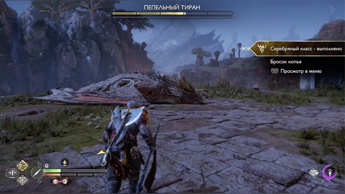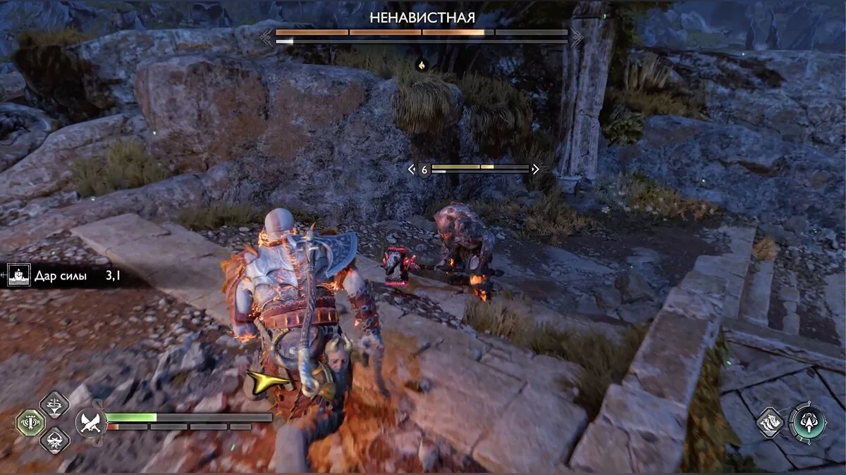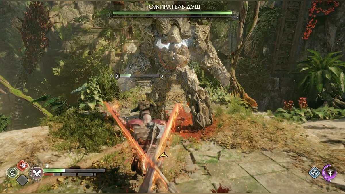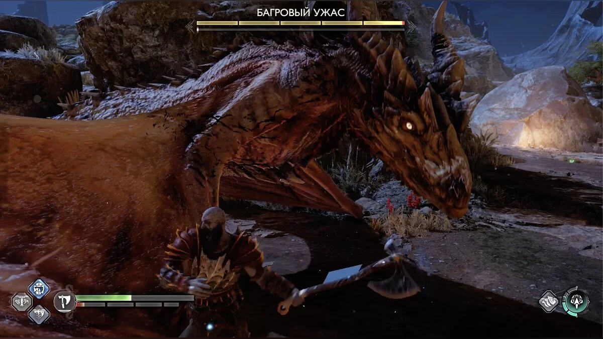 Чтобы найти эту просьбу, обязательно разыщите алтарь и установите ночь. От главного входа в Кратер идите в левую сторону, никуда не сворачивая. Спускайтесь с уступа и продолжайте держаться левой стороны. Перепрыгните пропасть и перепрыгните с помощью клинков в ранее недоступную часть локации. Как только вы поднимитесь на уступ, увидите рядом тушу животного. Атрей подскажет, что где-то поблизости Пожиратель душ. Это тот самый враг, которому нужно швырять в грудь его же осколки.