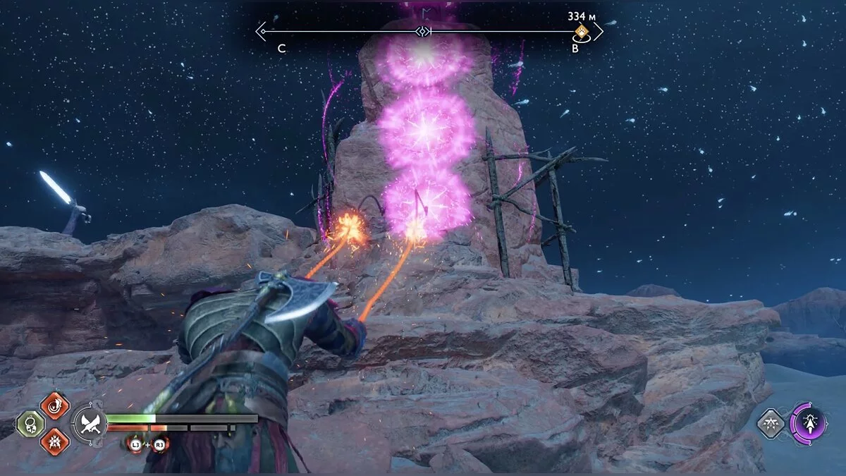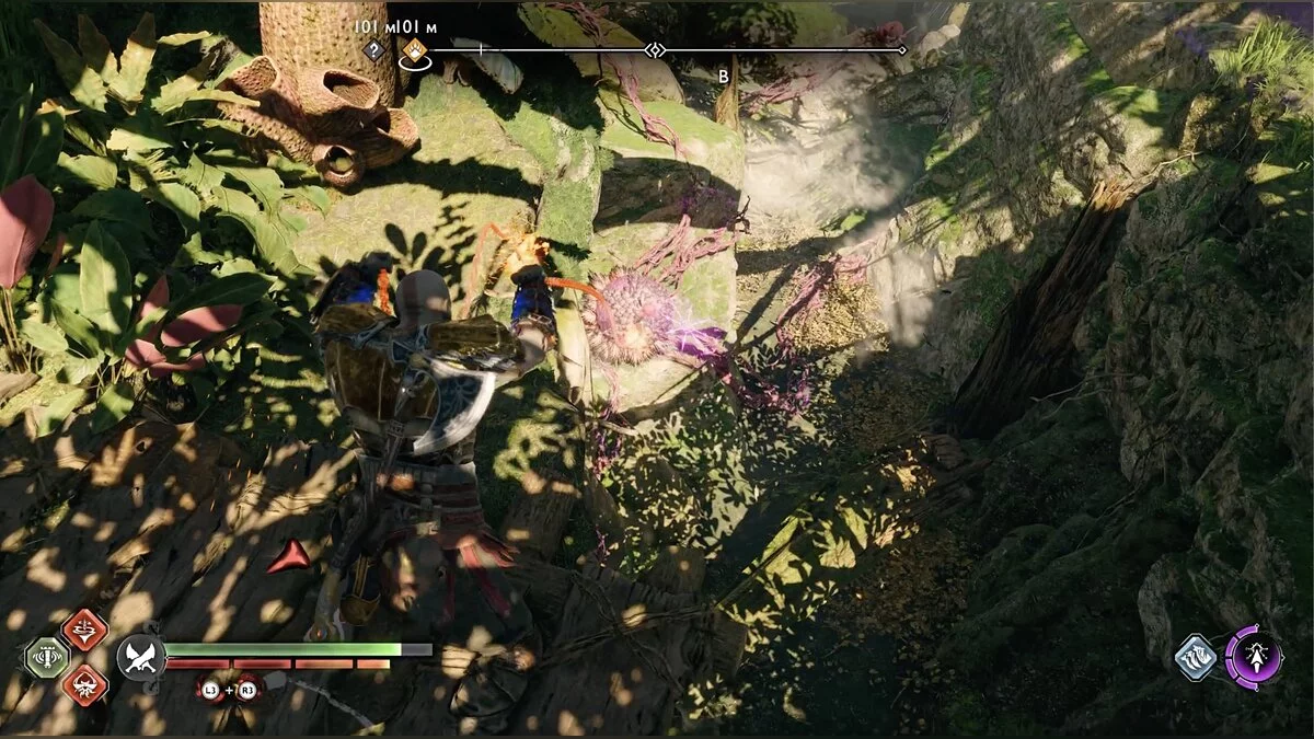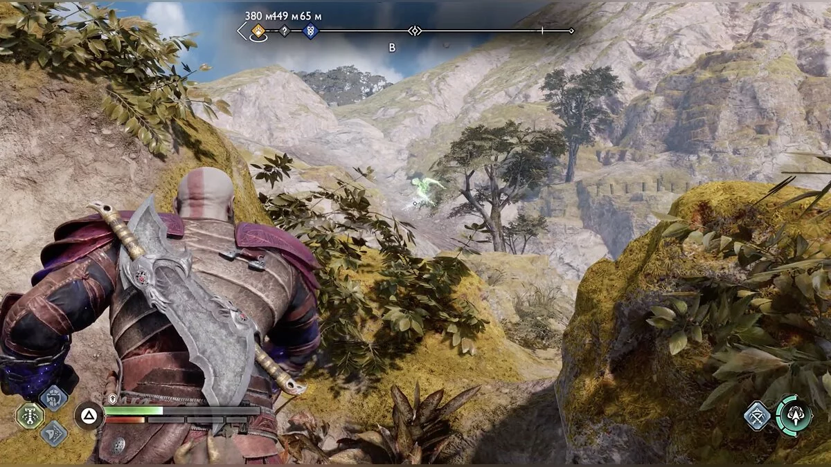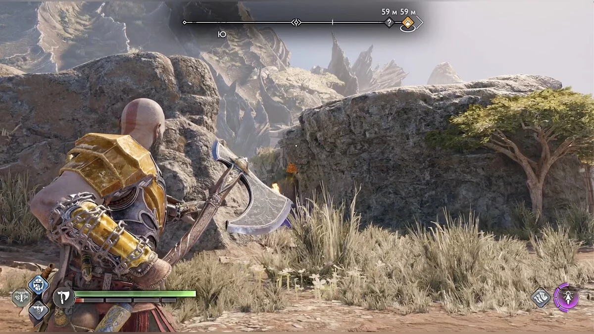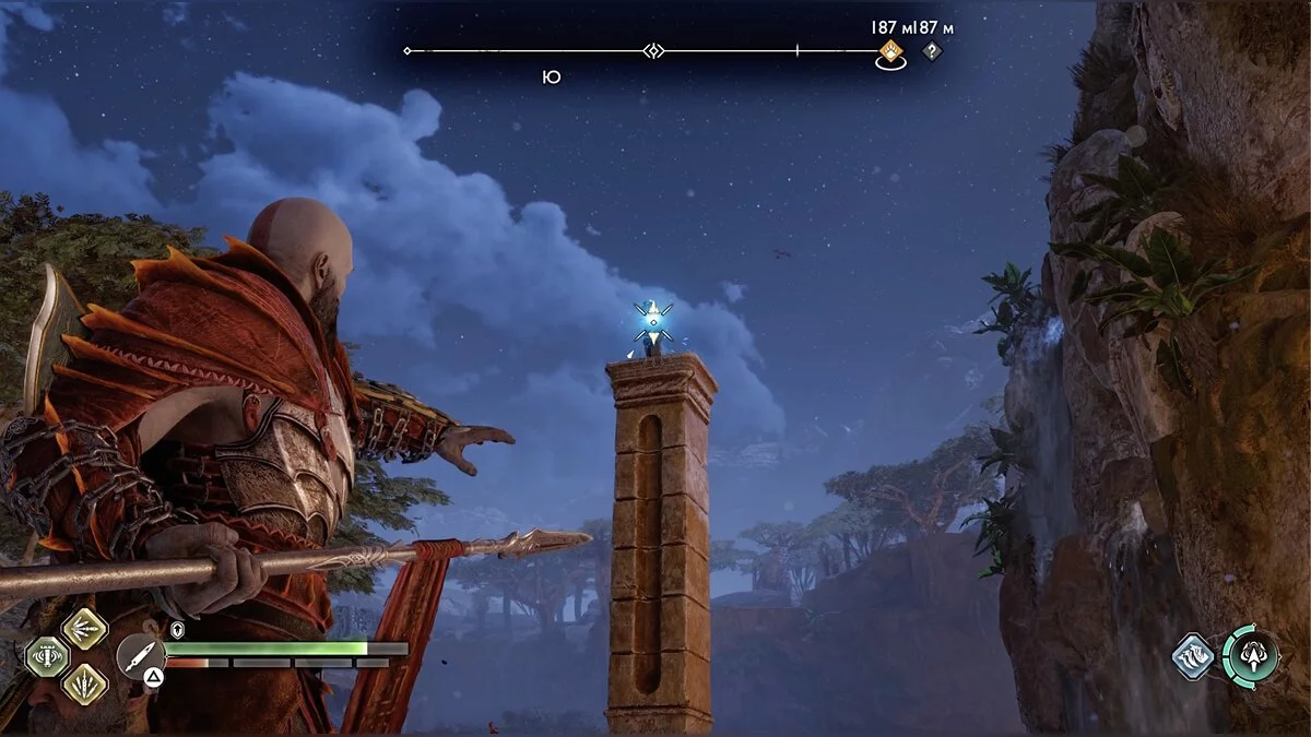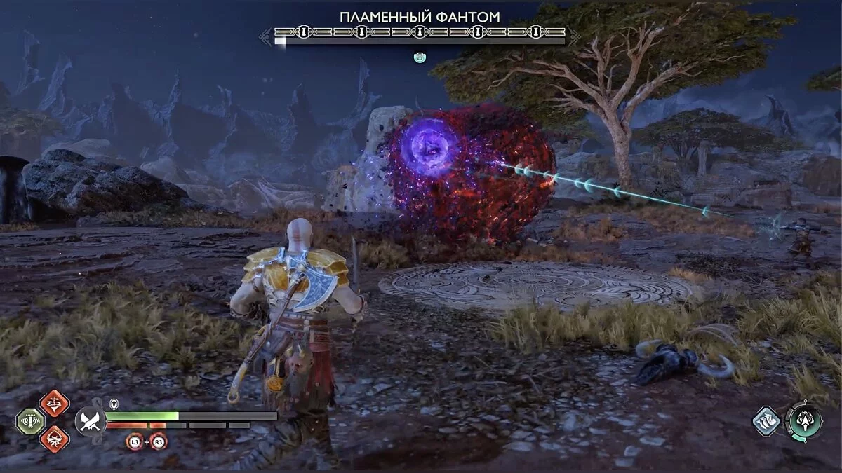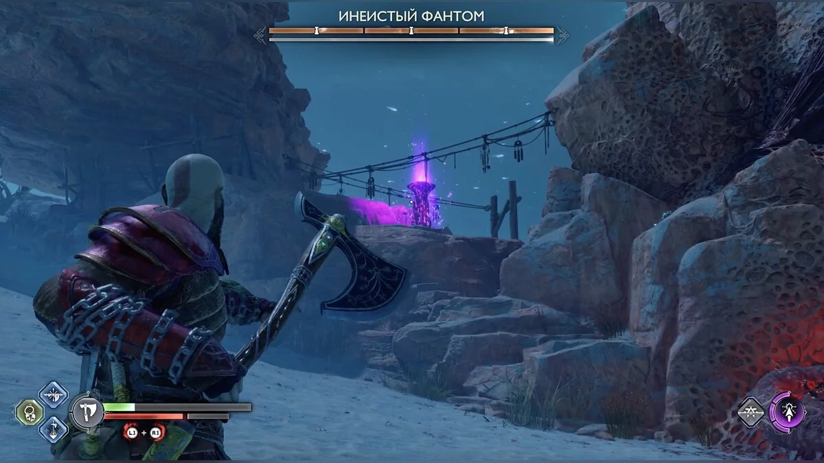Чтобы найти эту просьбу, обязательно разыщите алтарь и установите ночь. От главного входа в Кратер идите в левую сторону, никуда не сворачивая. Спускайтесь с уступа и продолжайте держаться левой стороны. Перепрыгните пропасть и перепрыгните с помощью клинков в ранее недоступную часть локации. Как только вы поднимитесь на уступ, увидите рядом тушу животного. Атрей подскажет, что где-то поблизости Пожиратель душ. Это тот самый враг, которому нужно швырять в грудь его же осколки.