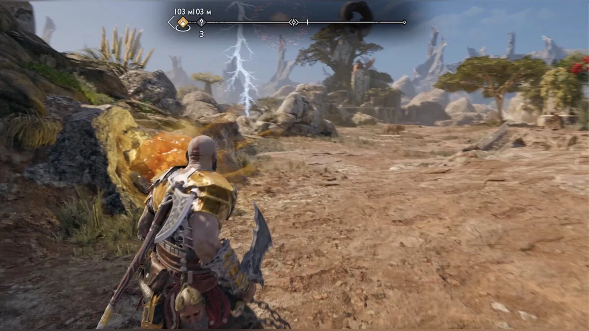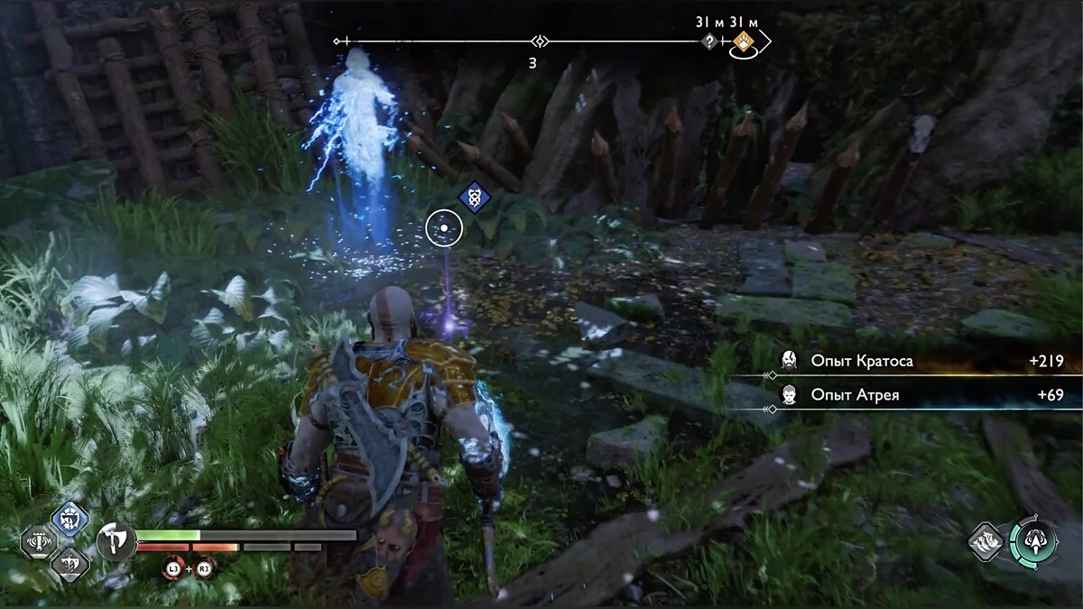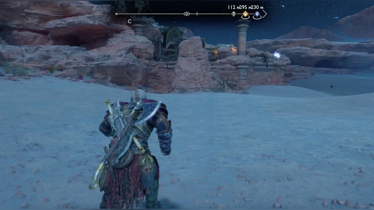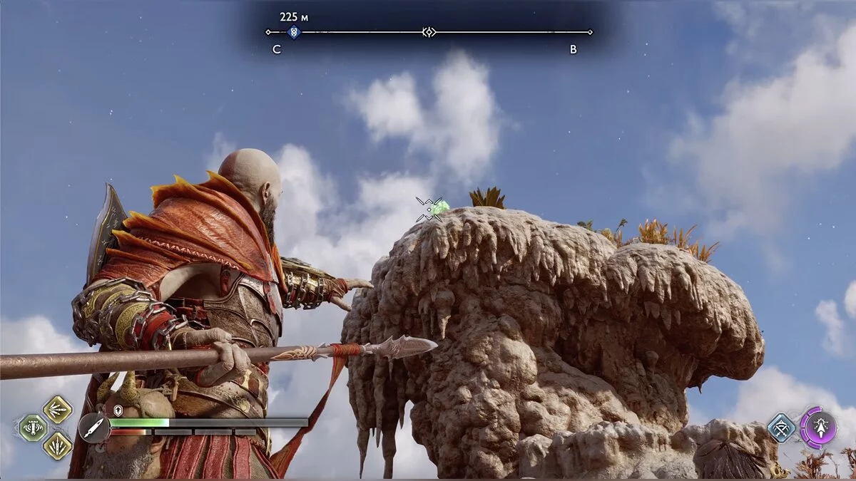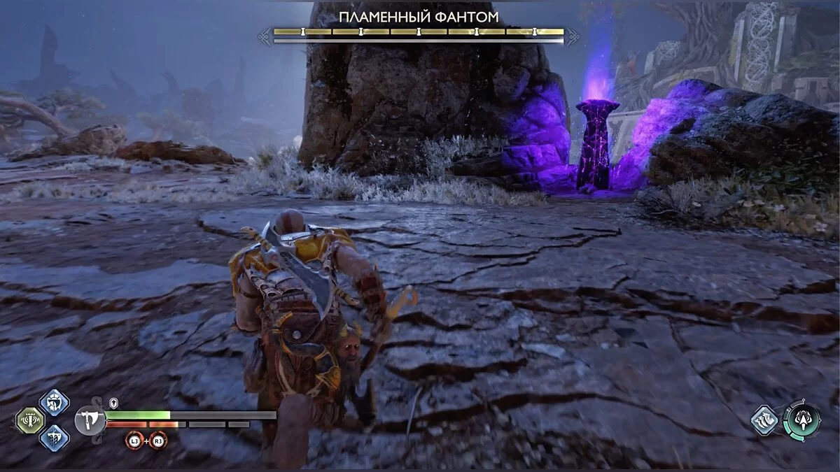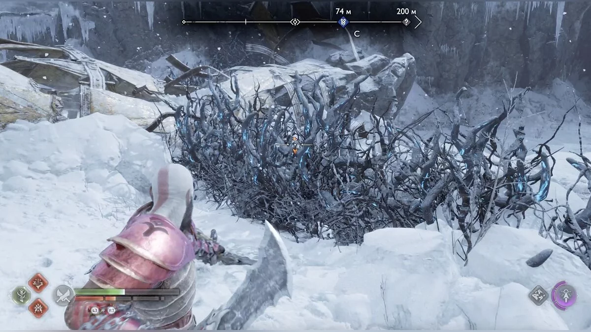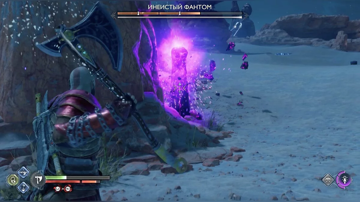 Чтобы найти эту просьбу, обязательно разыщите алтарь и установите ночь. От главного входа в Кратер идите в левую сторону, никуда не сворачивая. Спускайтесь с уступа и продолжайте держаться левой стороны. Перепрыгните пропасть и перепрыгните с помощью клинков в ранее недоступную часть локации. Как только вы поднимитесь на уступ, увидите рядом тушу животного. Атрей подскажет, что где-то поблизости Пожиратель душ. Это тот самый враг, которому нужно швырять в грудь его же осколки.