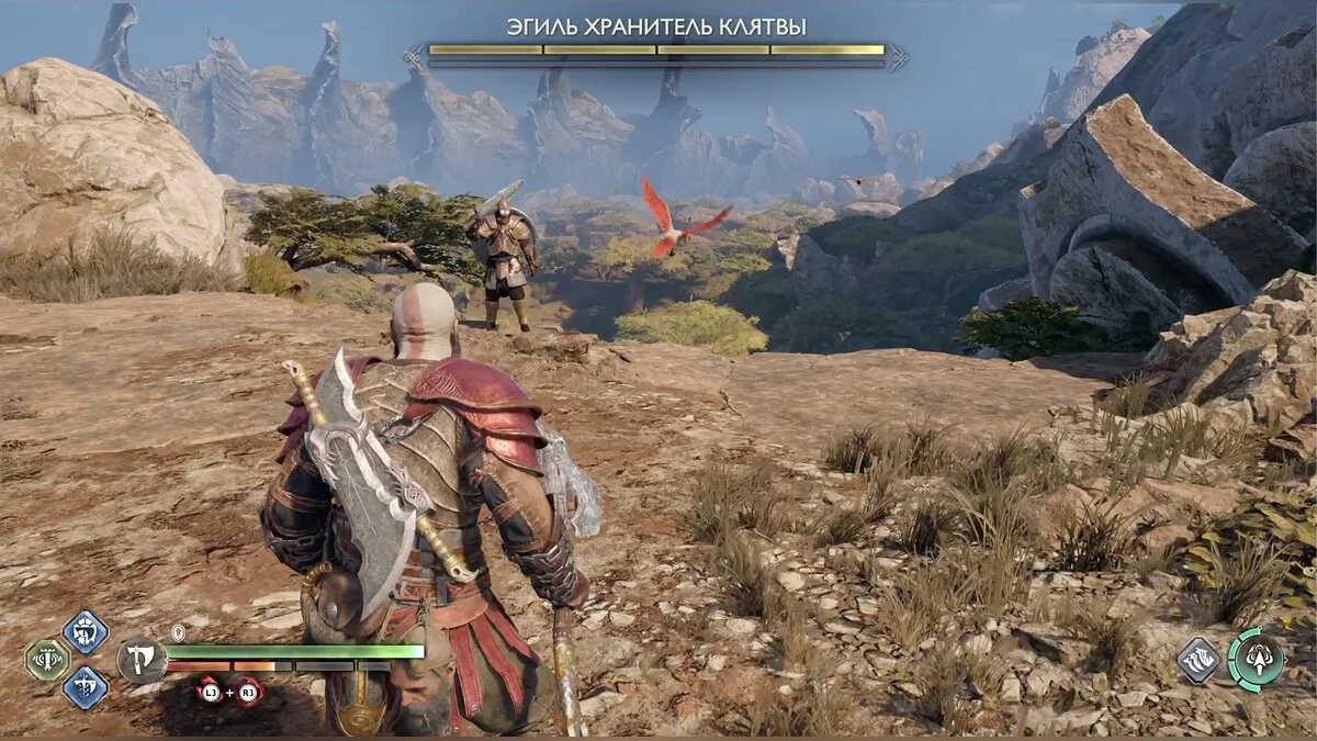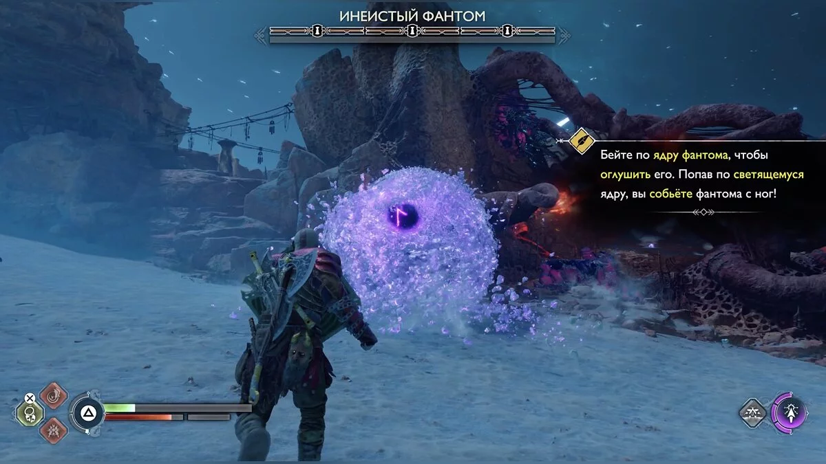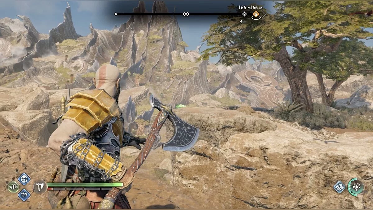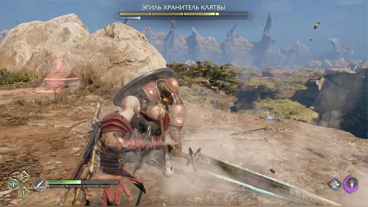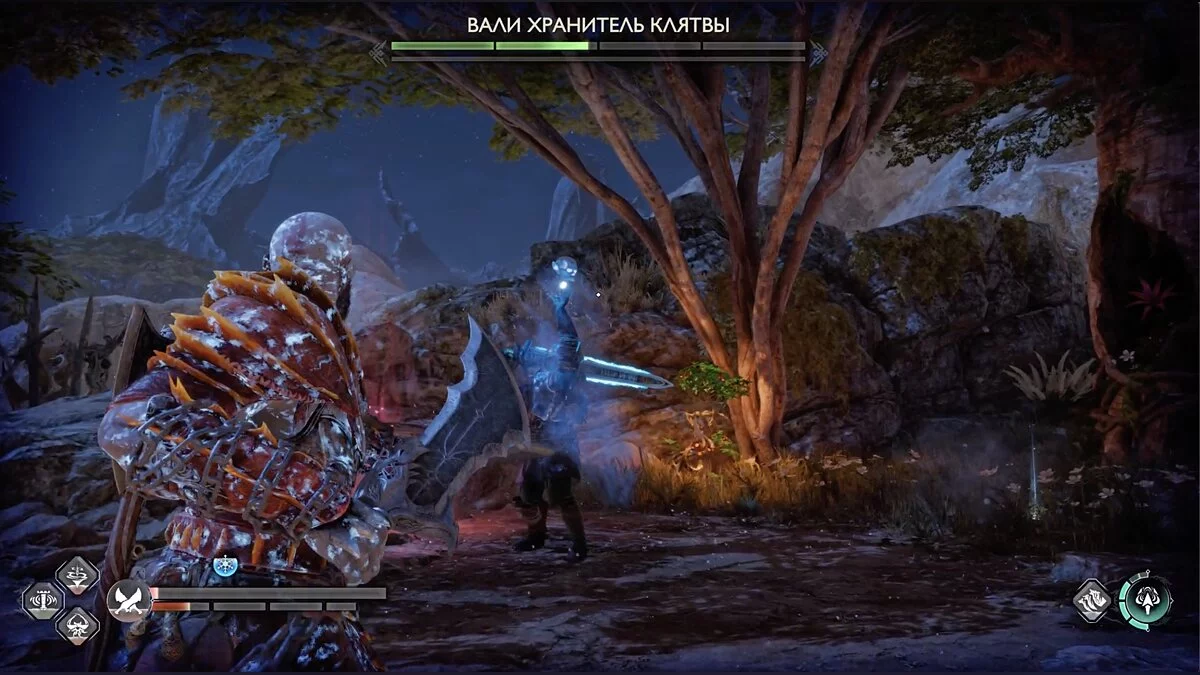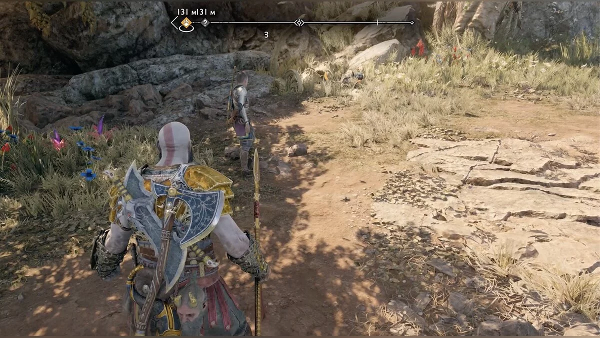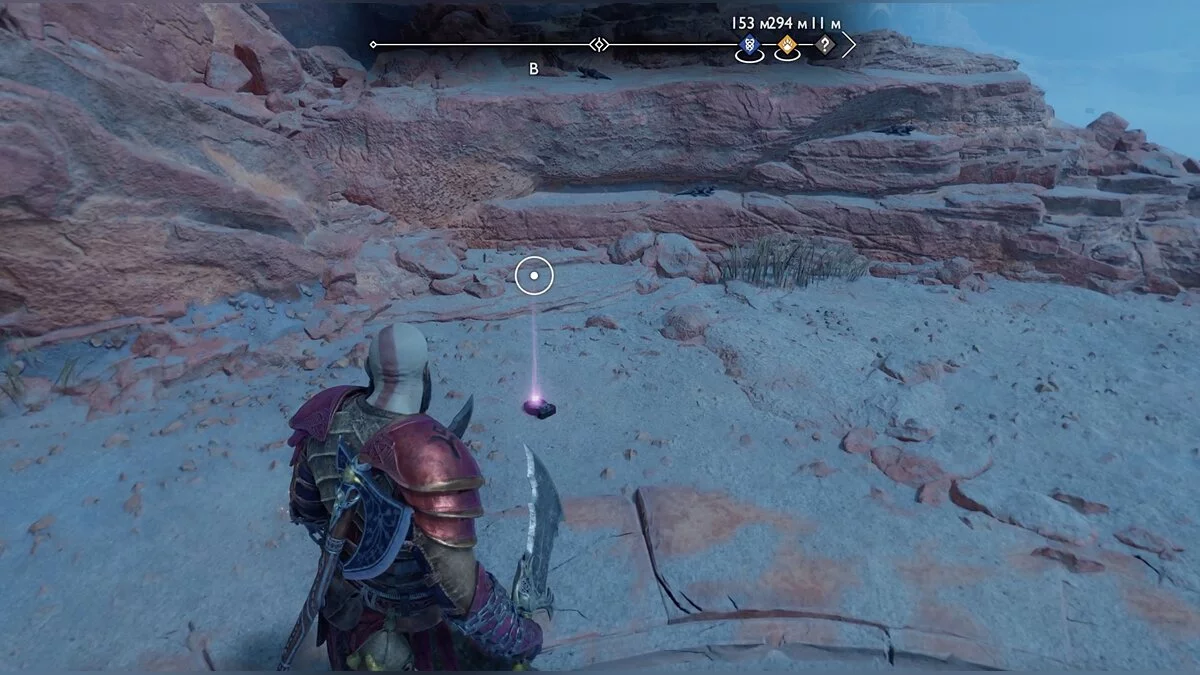 Чтобы найти эту просьбу, обязательно разыщите алтарь и установите ночь. От главного входа в Кратер идите в левую сторону, никуда не сворачивая. Спускайтесь с уступа и продолжайте держаться левой стороны. Перепрыгните пропасть и перепрыгните с помощью клинков в ранее недоступную часть локации. Как только вы поднимитесь на уступ, увидите рядом тушу животного. Атрей подскажет, что где-то поблизости Пожиратель душ. Это тот самый враг, которому нужно швырять в грудь его же осколки.