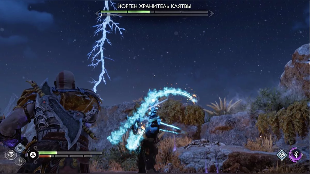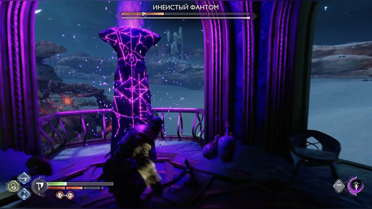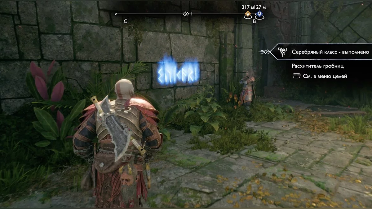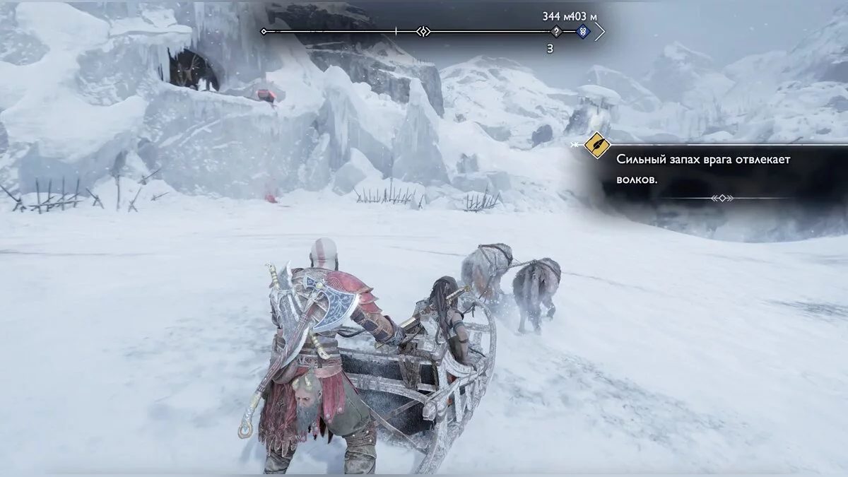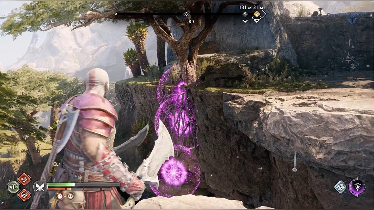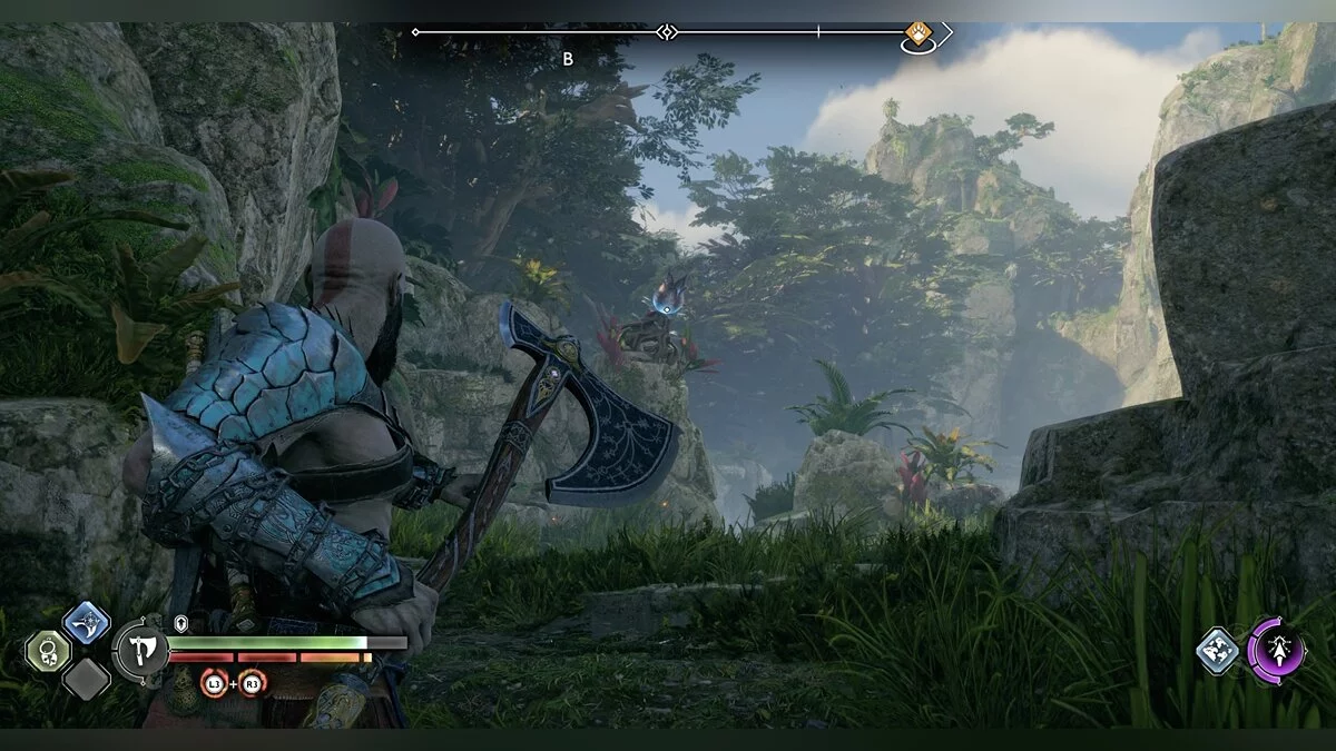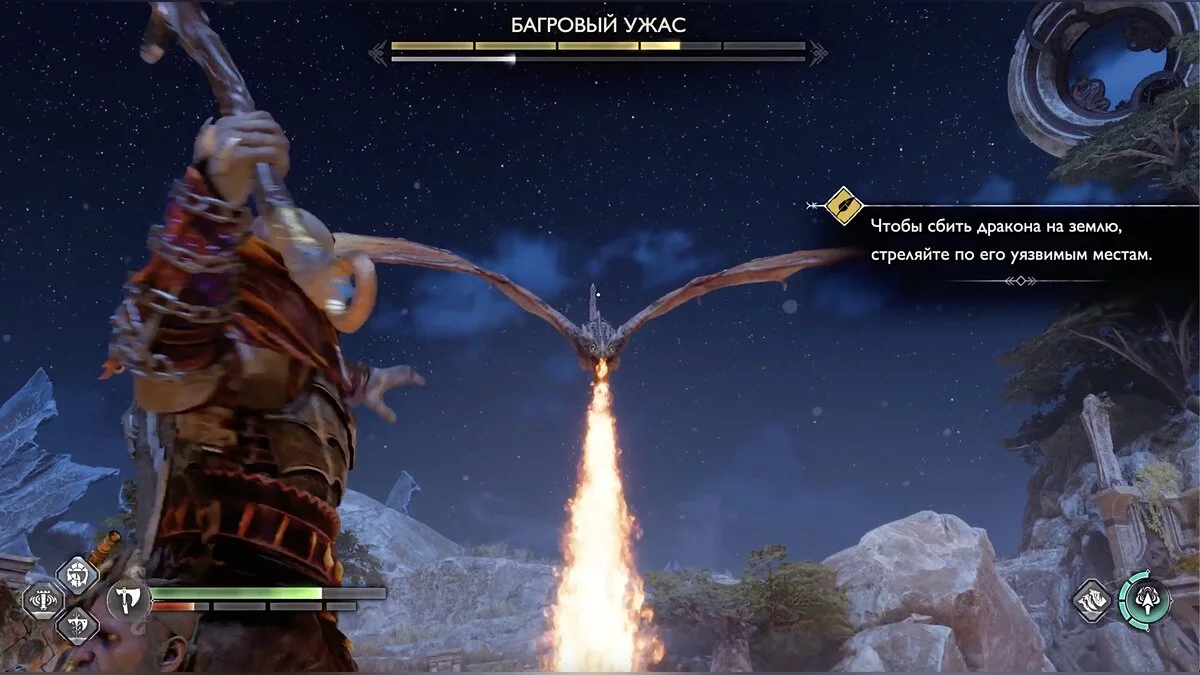 Чтобы найти эту просьбу, обязательно разыщите алтарь и установите ночь. От главного входа в Кратер идите в левую сторону, никуда не сворачивая. Спускайтесь с уступа и продолжайте держаться левой стороны. Перепрыгните пропасть и перепрыгните с помощью клинков в ранее недоступную часть локации. Как только вы поднимитесь на уступ, увидите рядом тушу животного. Атрей подскажет, что где-то поблизости Пожиратель душ. Это тот самый враг, которому нужно швырять в грудь его же осколки.