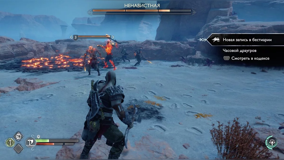 Как мы уже писали выше, задание начнется, когда вы найдете сильного огненного драуга около Дозорной башни, однако после победы оно не закончится. Откройте дневник, чтобы увидеть подробности — предстоит уничтожить еще пять таких же врагов. В мире гномов есть еще один такой драуг, которого можно найти в ходе сюжетного задания в шахте, когда Кратос и Атрей будут разыскивать Тюра.