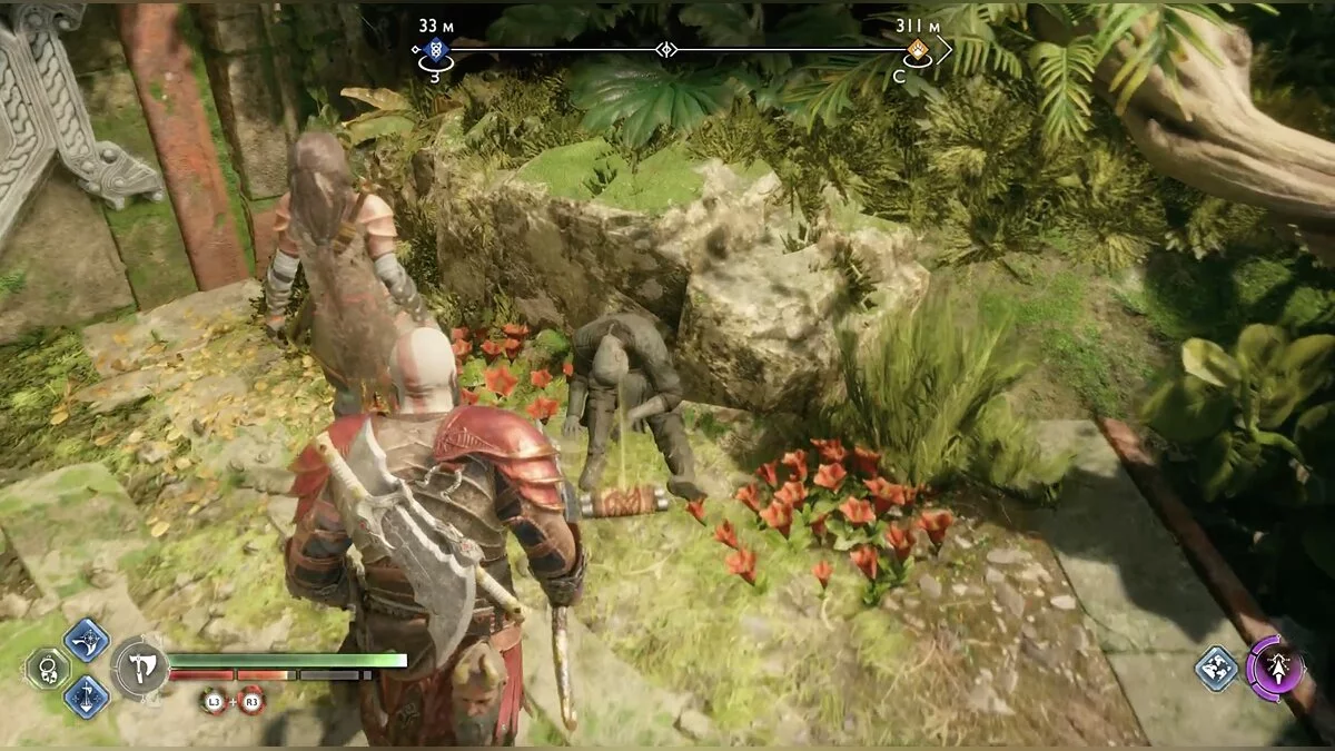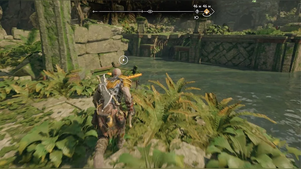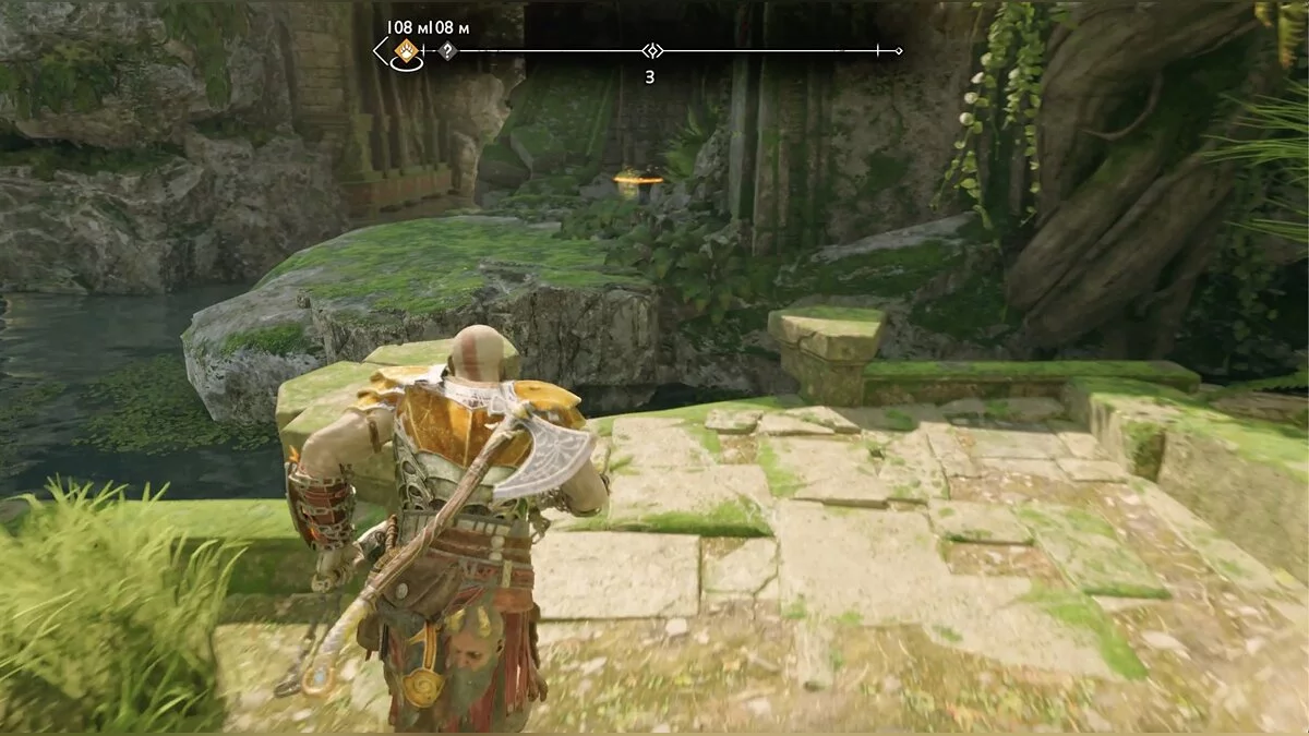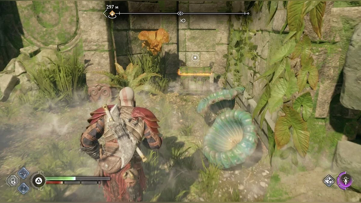 Цветок можно найти, если добраться до круглых руин по воде. Подробнее об этом в предыдущем квесте. Станьте лицом к кругу и идите налево — Кратос сразу заметит цветок.